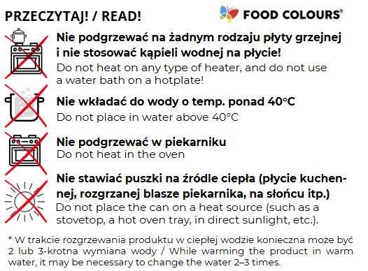 Kąpiel wodna: Przed użyciem włóż puszkę na około 15-20 minut do naczynia z ciepłą