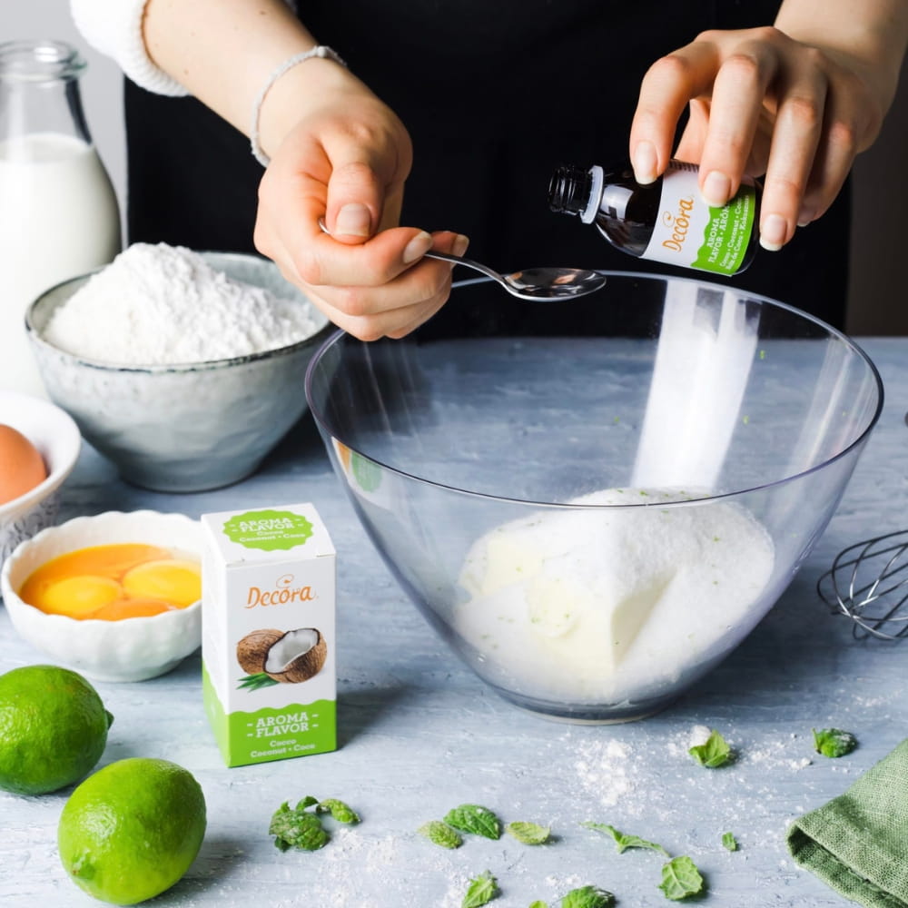 Skoncentrowany aromat o smaku kokosowym, spożywczy w płynie. Jest bardzo wydajny: wystarczy kilka kropel, aby uzyskać fascynujący smak i zapach. Może być używany do wszelkiego rodzaju słodkich wypieków: ciast, tortów, muffinów, babeczek, makaroników, kruchych i maślanych ciastek, biszkoptów, czekoladek, a także na zimno do lodów, kremów i mrożonych deserów. Zaleca się dawkowanie od 5 do 10 g na 1 kg aromatyzowanej masy, w zależności od pożądanej intensywności smaku.
