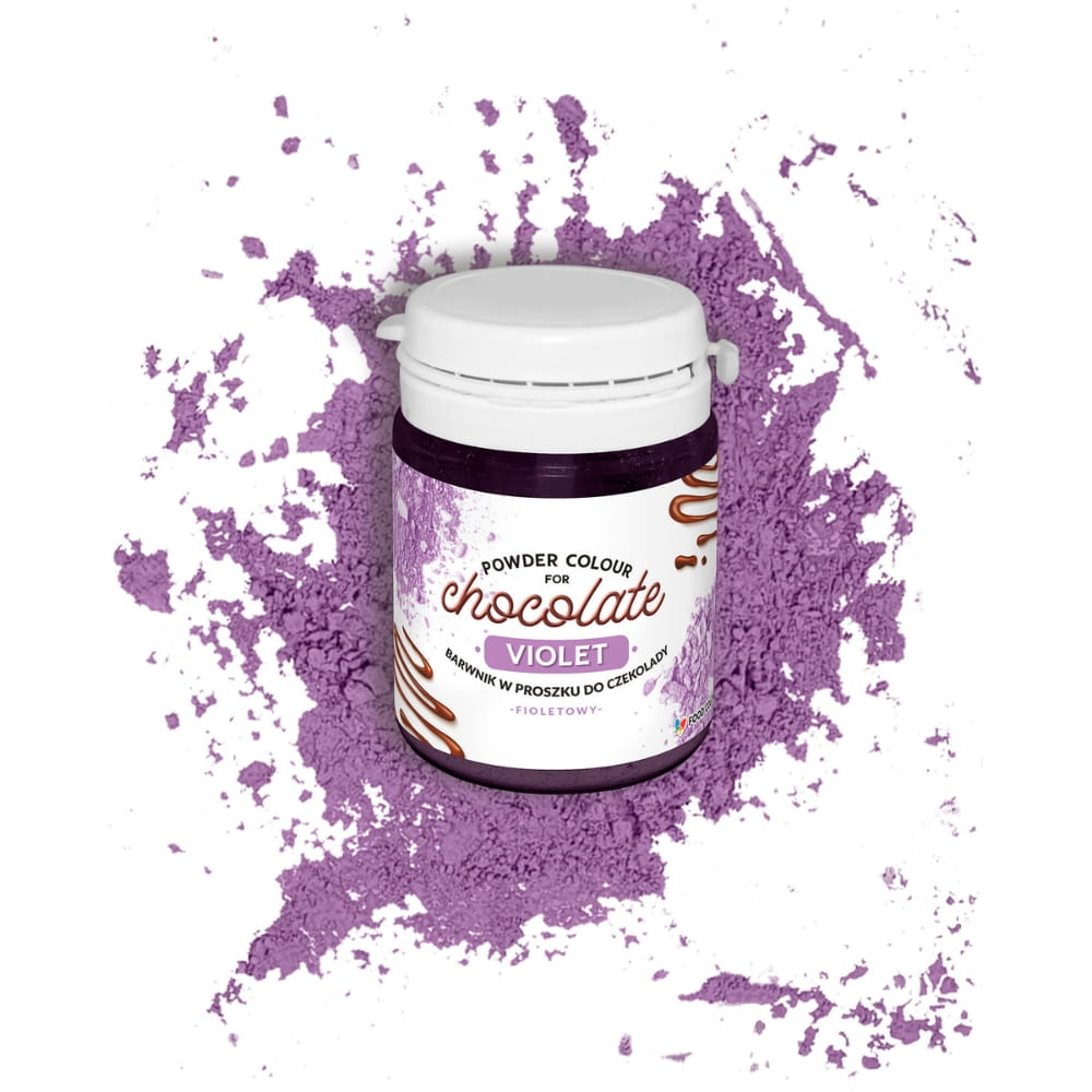 Fioletowy barwik spożywczy do czekolady w proszku. Tradycyjny, silnie skoncentrowany barwnik syntetyczny w postaci proszku. Zapewnia żywe kolory o wysokiej wydajności. Można go stosować do barwienia prawdziwej czekolady, czekoladek, pralin, masła kakaowego, śmietany, surogatów czekoladowych, mas tłustych oraz kremów. Szczególnie polecany do pralin, tłustych kremów i barwienia detali z czekolady. Barwnik nie wpływa na proces temperowania czekolady.