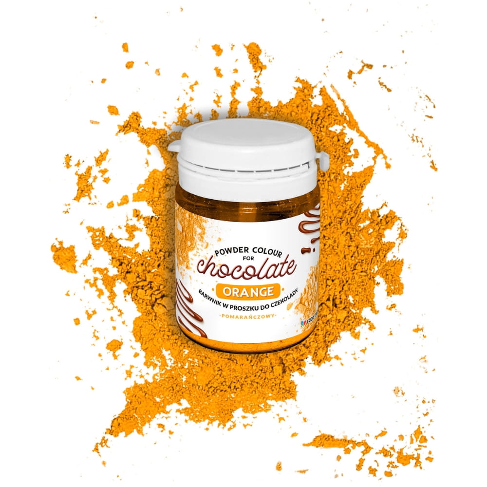 Pomarańczowy barwik spożywczy do czekolady w proszku. Tradycyjny, silnie skoncentrowany barwnik syntetyczny w postaci proszku. Zapewnia żywe kolory o wysokiej wydajności. Można go stosować do barwienia prawdziwej czekolady, czekoladek, pralin, masła kakaowego, śmietany, surogatów czekoladowych, mas tłustych oraz kremów. Szczególnie polecany do pralin, tłustych kremów i barwienia detali z czekolady. Barwnik nie wpływa na proces temperowania czekolady.
