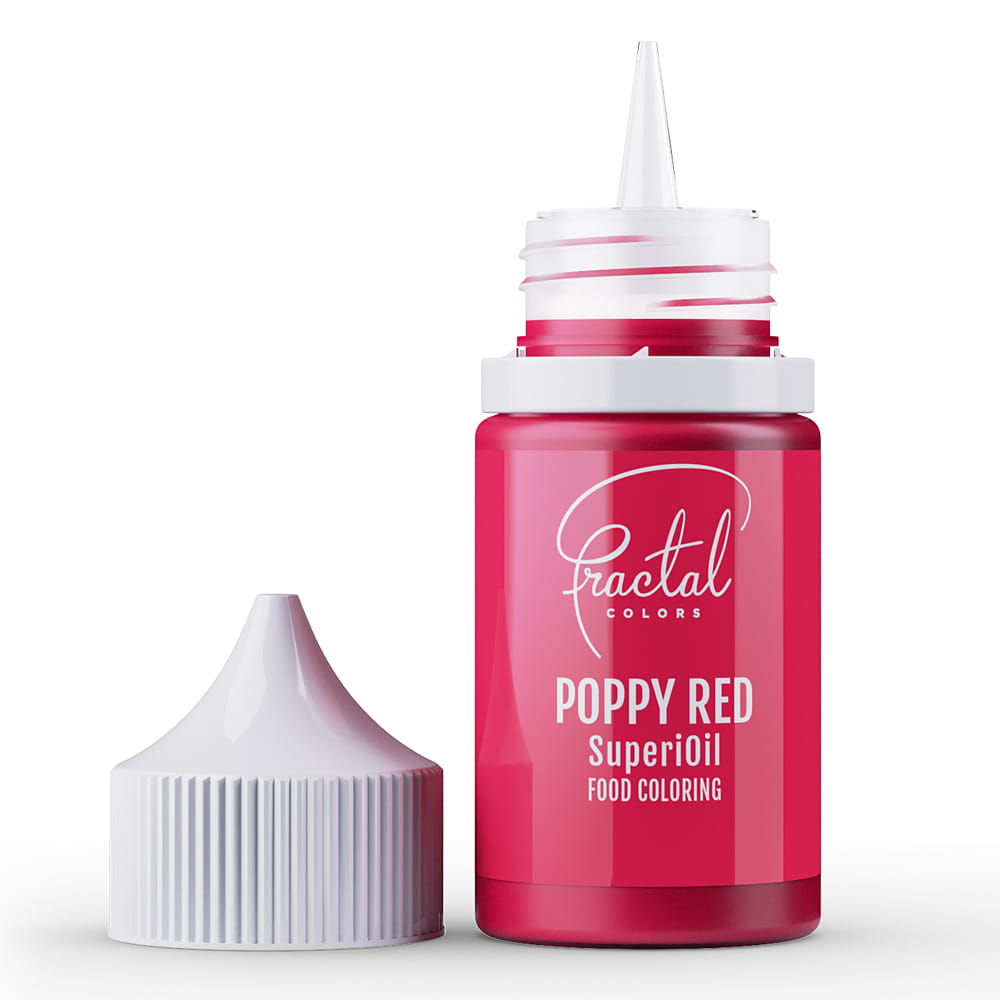 Płynne barwniki na bazie oleju, bardzo dobrze rozpuszczalne w tłuszczach, szczególnie odpowiednie do barwienia czekolady. Idealne również do barwienia kremów na bazie tłuszczu, takich jak śmietana i krem maślany. Wyróżniają się mocnym nasyceniem kolorów, wydajnością, dużą siłą krycia oraz łatwością wprowadzania w masę. Barwniki olejowe Fractal Colors są w 100% spożywcze i dostępne w palecie 10 pięknych kolorów. Podczas pracy z barwnikami SuperiOil zaleca się używanie tylko metalowych narzędzi, barwnik jest bardzo mocny i trudno go zmyć z materiałów takich jak plastik, drewno czy tkanina. Przed użyciem dobrze wstrząsnąć.