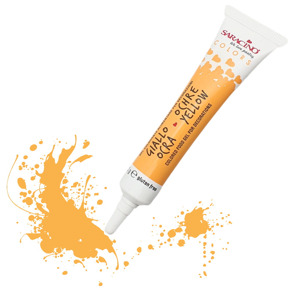 Barwnik spożywczy w żelu, w kolorze ochra — najmodniejszym odcieniu żółci. Zapakowany w praktyczną, super wygodną do aplikacji tubkę! Barwnik wystarczy dodać do masy cukrowej lub kremu i odpowiednio wymieszać albo ugnieść. Dzięki niskiej zawartości wody łatwo wrabia się w masy cukiernicze. Nie zalecany do użycia z masami tłuszczowymi. Wysoka koncentracja barwnika sprawia, że jest on bardzo wydajny. Doskonale sprawdzi się przy wypieku ciast, muffinów, lodów, a także przy dekorowaniu tortów czy innych słodkości.