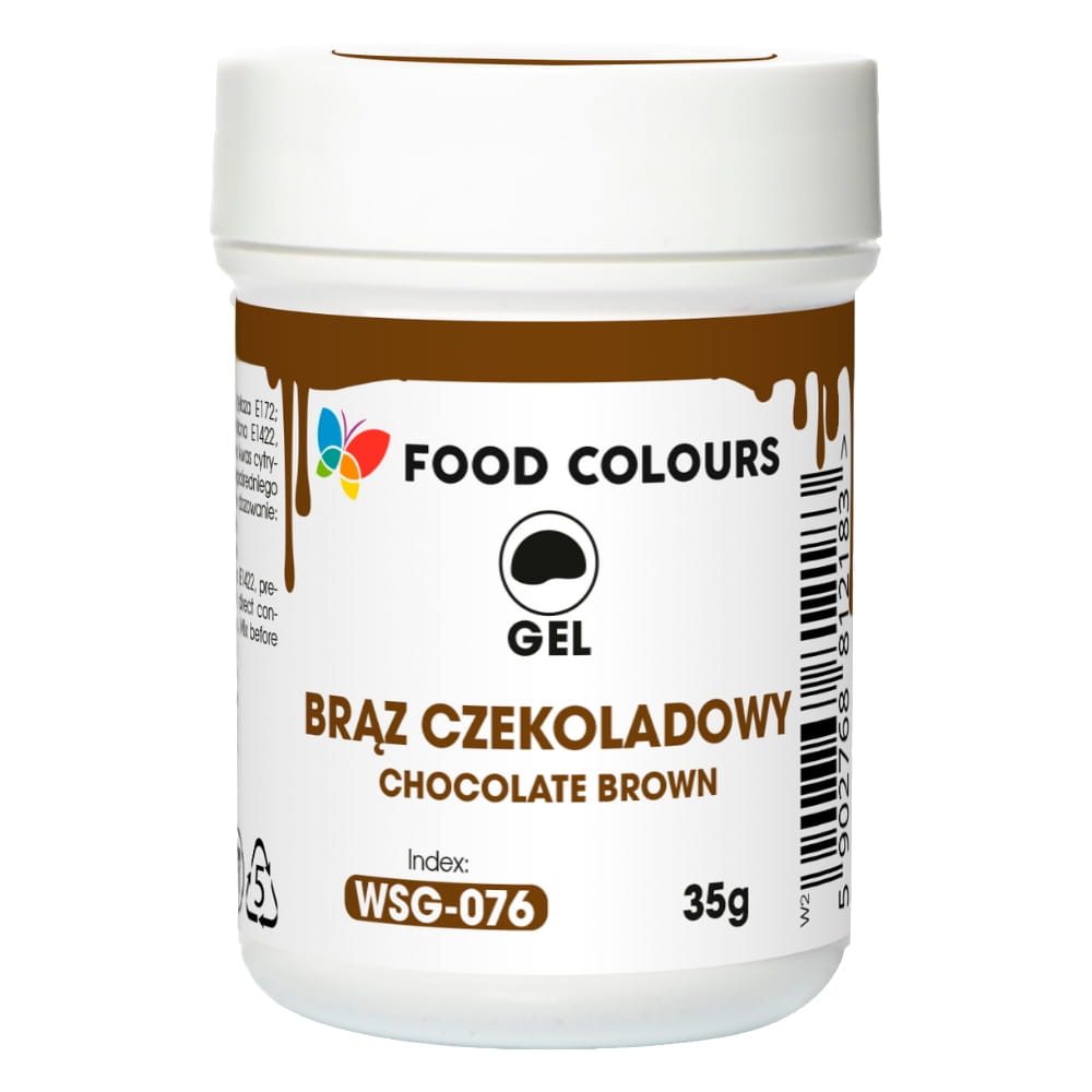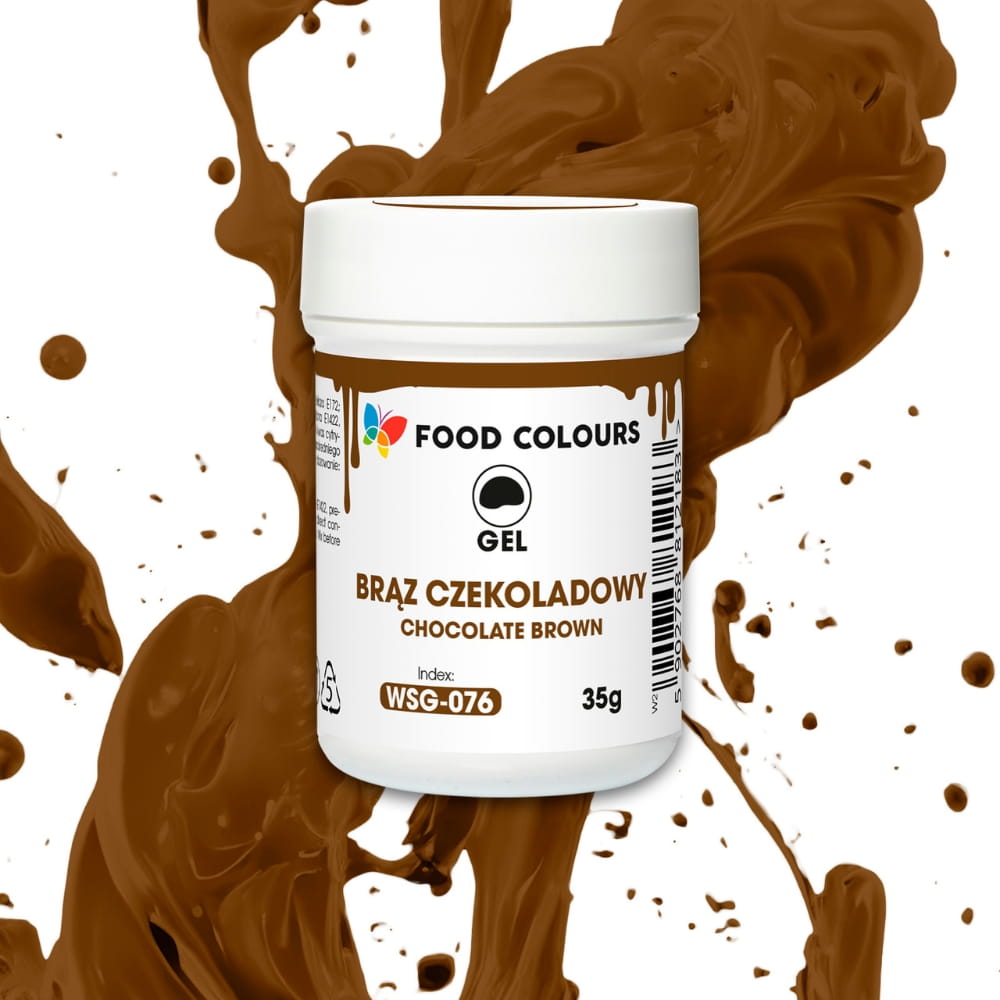 Wysokiej jakości barwnik spożywczy w żelu, w kolorze brązowym czekoladowym. Zapakowany w praktyczny, zamykany słoiczek. Barwnik wystarczy dodać do masy cukrowej lub kremu i odpowiednio wymieszać albo ugnieść. Dzięki niskiej zawartości wody łatwo wrabia się w masy cukiernicze. Nie zalecany do użycia z masami tłuszczowymi. Wysoka koncentracja barwnika sprawia, że jest on bardzo wydajny. Doskonale sprawdzi się przy wypieku ciast, muffinów, lodów, a także przy dekorowaniu tortów czy innych słodkości.