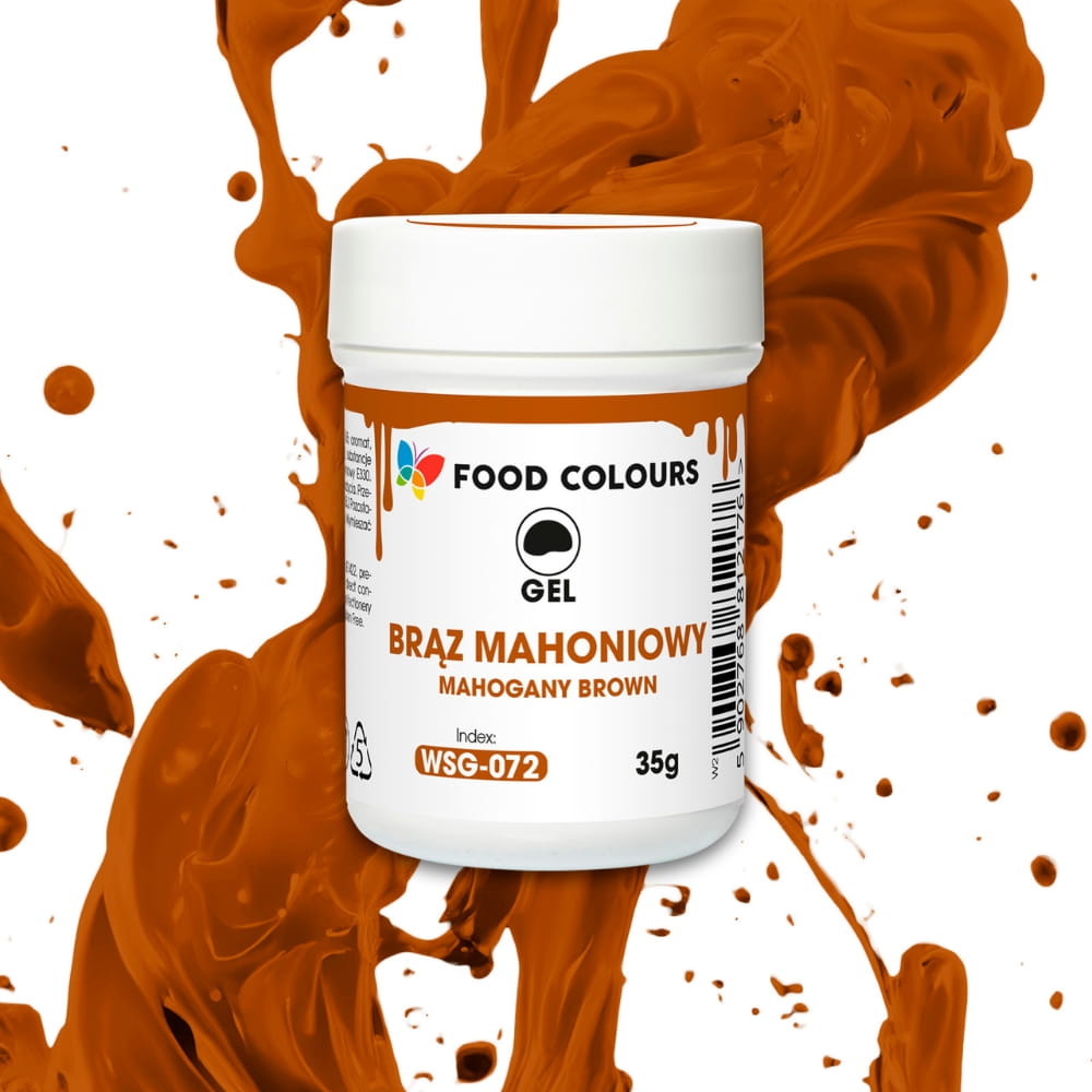 Wysokiej jakości barwnik spożywczy w żelu, w kolorze brązowym mahoniowym. Zapakowany w praktyczny, zamykany słoiczek. Barwnik wystarczy dodać do masy cukrowej lub kremu i odpowiednio wymieszać albo ugnieść. Dzięki niskiej zawartości wody łatwo wrabia się w masy cukiernicze. Nie zalecany do użycia z masami tłuszczowymi. Wysoka koncentracja barwnika sprawia, że jest on bardzo wydajny. Doskonale sprawdzi się przy wypieku ciast, muffinów, lodów, a także przy dekorowaniu tortów czy innych słodkości.