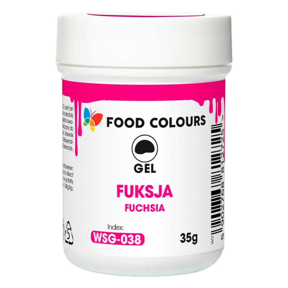 Wysokiej jakości barwnik spożywczy w żelu, w kolorze fuksja. Zapakowany w praktyczny, zamykany słoiczek. Barwnik wystarczy dodać do masy cukrowej lub kremu i odpowiednio wymieszać albo ugnieść. Dzięki niskiej zawartości wody łatwo wrabia się w masy cukiernicze. Nie zalecany do użycia z masami tłuszczowymi. Wysoka koncentracja barwnika sprawia, że jest on bardzo wydajny. Doskonale sprawdzi się przy wypieku ciast, muffinów, lodów, a także przy dekorowaniu tortów czy innych słodkości.