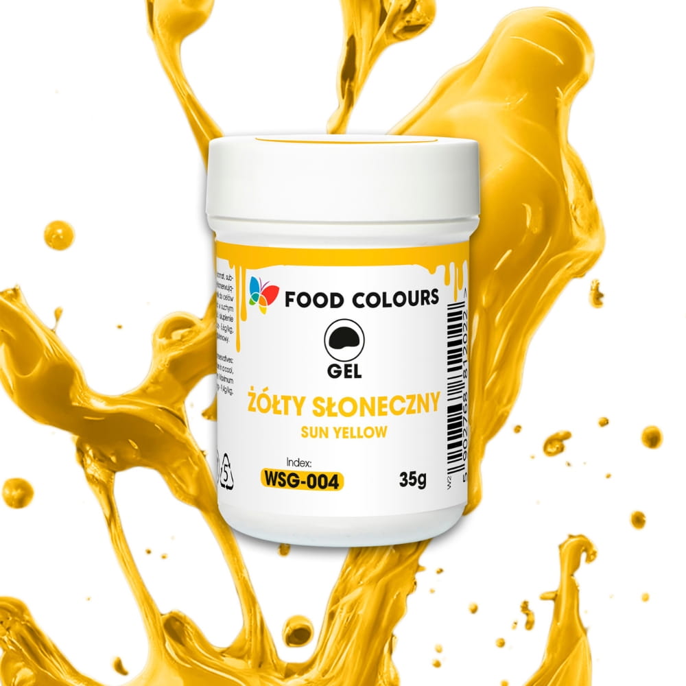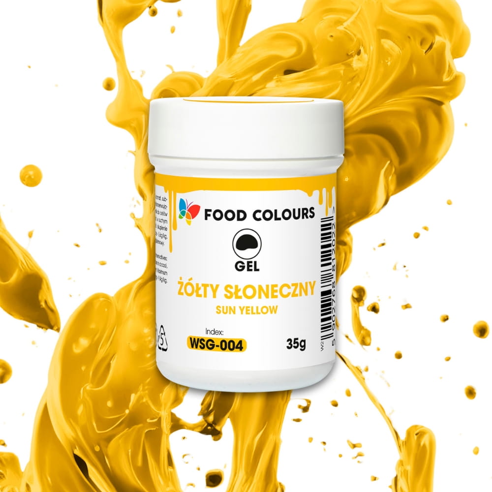 Wysokiej jakości barwnik spożywczy w żelu, w kolorze intensywnie żółtym. Zapakowany w praktyczny, zamykany słoiczek. Barwnik wystarczy dodać do masy cukrowej lub kremu i odpowiednio wymieszać albo ugnieść. Dzięki niskiej zawartości wody łatwo wrabia się w masy cukiernicze. Nie zalecany do użycia z masami tłuszczowymi. Wysoka koncentracja barwnika sprawia, że jest on bardzo wydajny. Doskonale sprawdzi się przy wypieku ciast, muffinów, lodów, a także przy dekorowaniu tortów czy innych słodkości.
