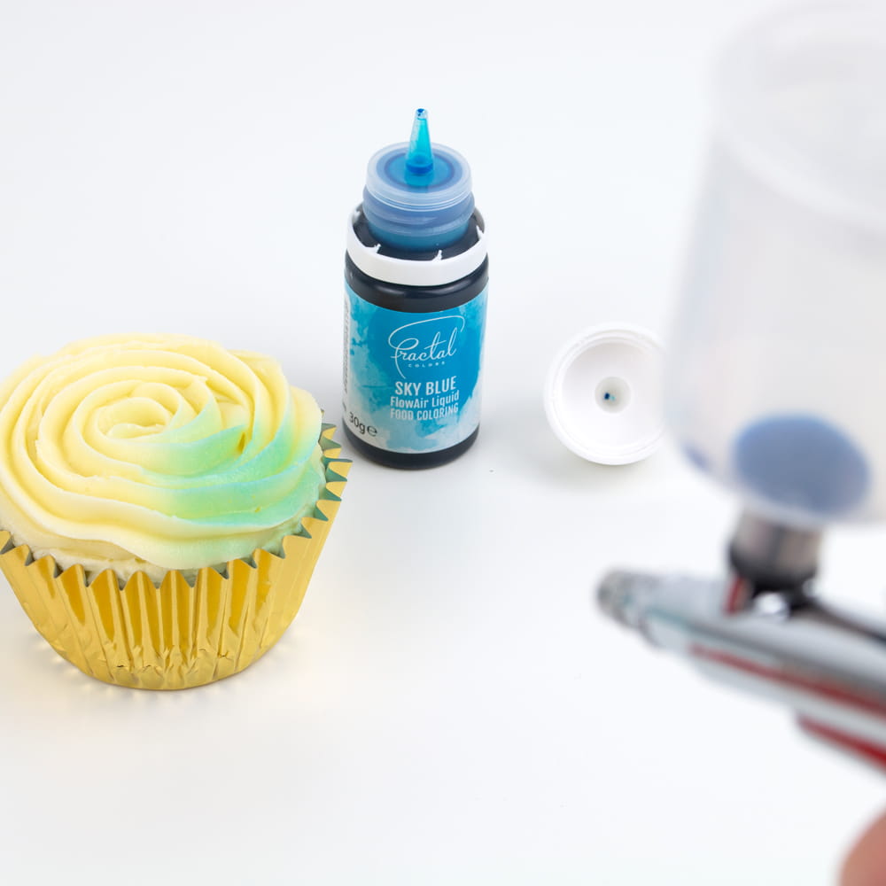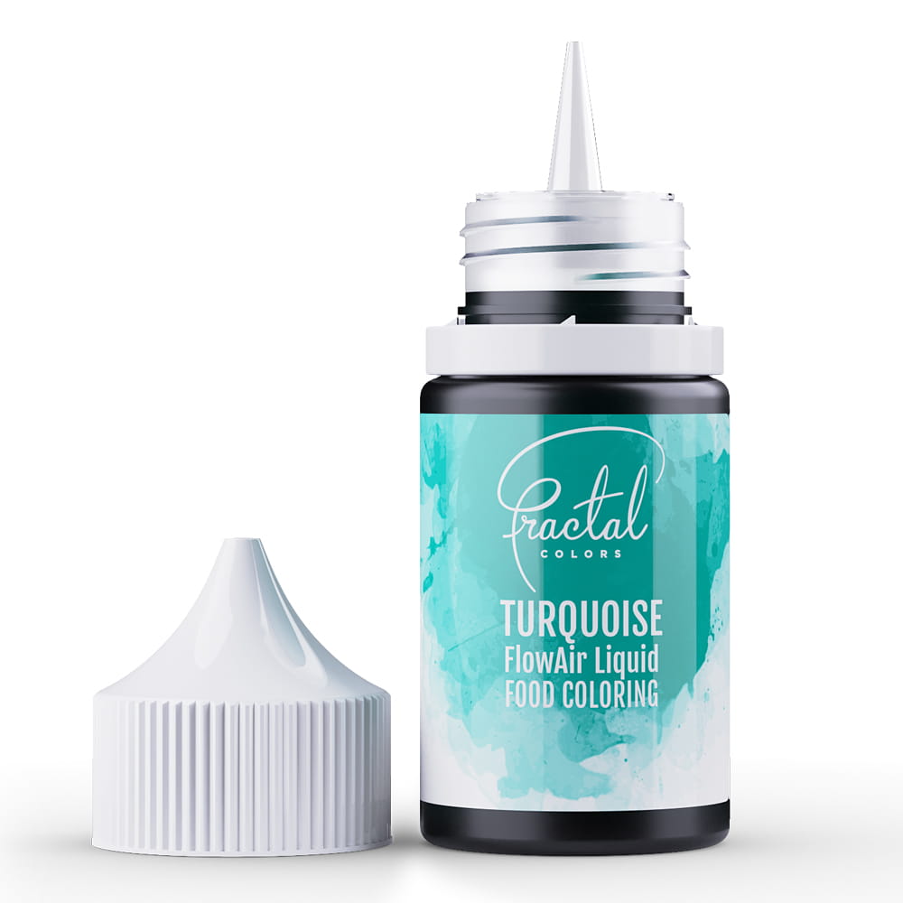 Barwnik spożywczy w płynie w kolorze turksuowym do aerografu. Barwnik na bazie wody w zgrabnej, przejrzystej butelce z kroplomierzem. Proste i praktyczne rozwiązanie do kolorowania, cieniowania, tworzenia gradientów lub ręcznego malowania! Pozostawia intensywne i żywe wybarwienia. Intensywność koloru reguluje siła powietrza wydmuchiwanego z aerografu. Kompatybilny z każdym rodzajem aerografu, ekonomiczny i bardzo wydajny.