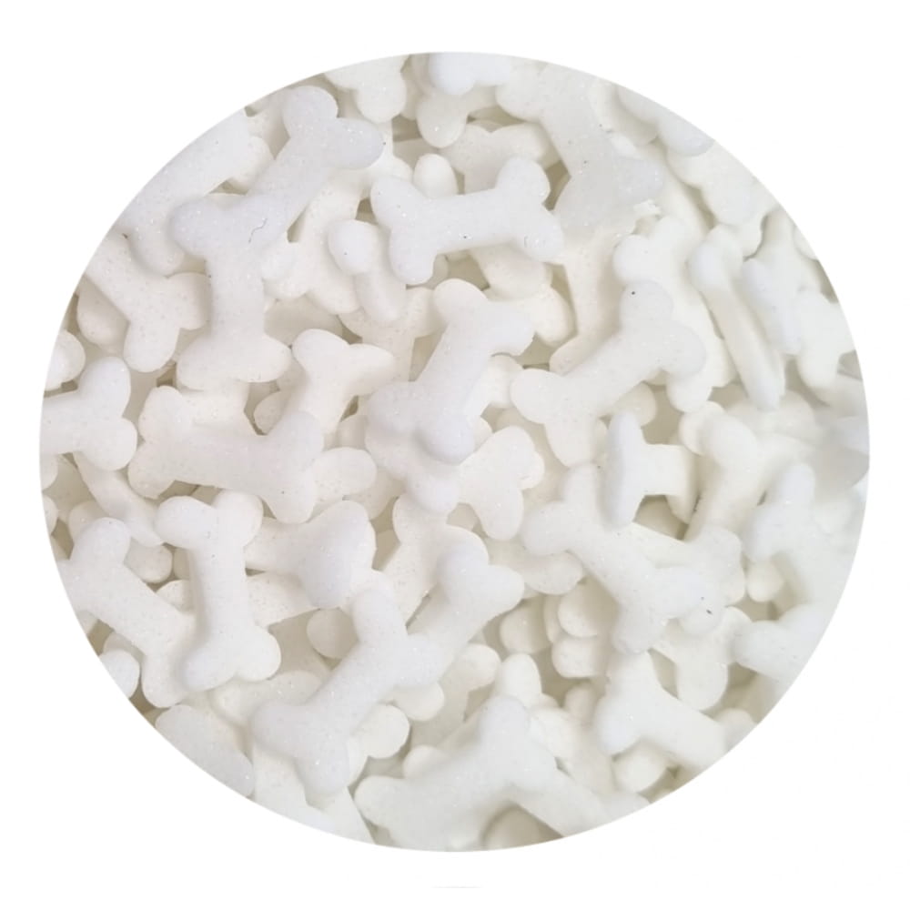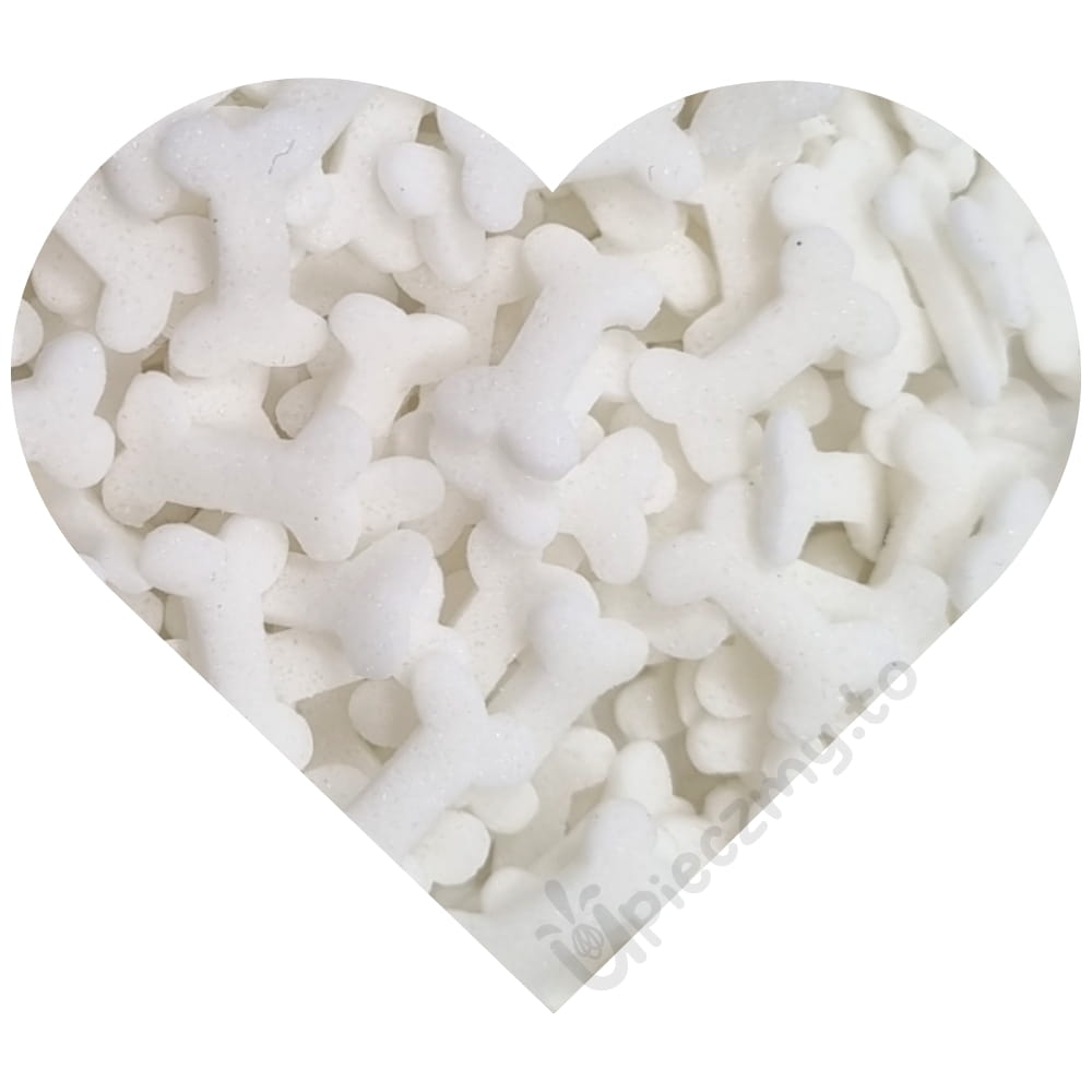 Posypka cukrowa to drobne konfetti w kształcie białych kosteczek. Kości mają około 5 mm. Pozwalają ciekawie udekorować: torty, muffinki, ciasta desery, cake pops, ciasteczka, pierniczki i wszelkie rodzaju wypieki. Jadalna posypka na tort pozwala stworzyć zachwycające dekoracje. Doskonała do ozdabiania wypieków i słodkości związanych z Halloween, dziećmi i piratami.