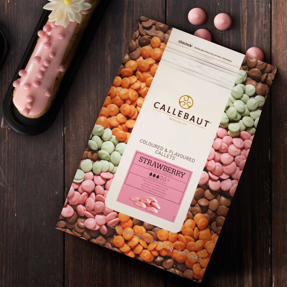 Z wyjątkowej serii smakowych czekolad. Uznana przez mistrzów cukiernictwa na całym świecie belgijska czekolada w pastylkach marki Callebaut. Najlepsza kuwertura czekoladowa o szerokim zastosowaniu. Uniwersalna płynność pozwala wszechstronnie wykorzystać czekoladę truskawkową: od formowania do oblewania, aromatyzowania i barwienia po tworzenie dekoracji. Pozwoli dodać kolorowe detale w wydrążonych figurkach i pralinach. Tworzyć kolorowe dekoracje do ciast i deserów. Jest idealna do aromatyzowania kremów, musów i wnętrz ciast z orzeźwiającym twistem. Dzięki wspaniałemu kolorowi daje niezwykłe możliwości podczas oblewania wyrobów piekarskich i ciastek.