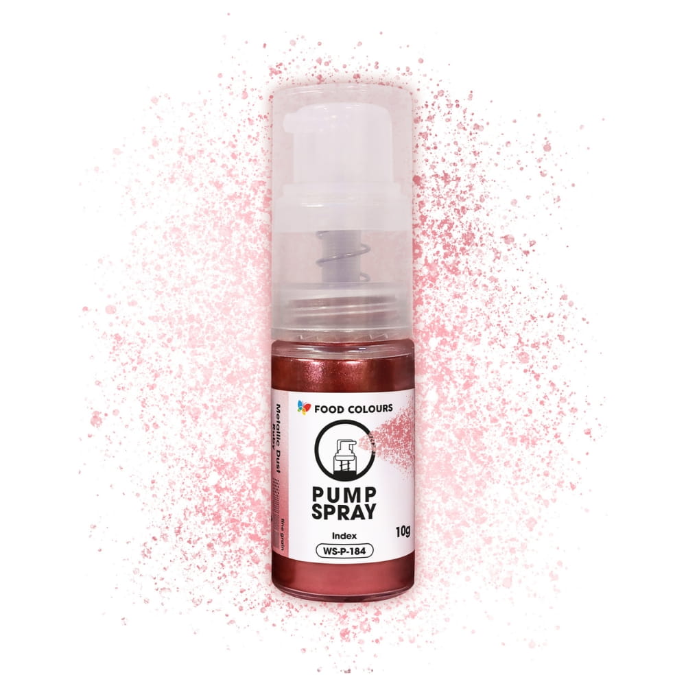 Czerwony pyłek w postaci suchego sprayu, który tworzy efekt metalicznego połysku na dekorowanych powierzchniach. Dust to bardzo drobny satynowy puder, gdzie blask nadają bardzo drobno zmielone drobinki. Idealny produkt do spektakularnego wykończenia cukierniczych dzieł. Można nim dekorować powierzchnie i masy, kremy, torty, marcepan, formy do pralin, dekoracje cukrowe, żele, czekoladki, dekoracje cukrowe i praktycznie wszystkie produkty cukiernicze. Dzięki pompce jest bardzo łatwy i wygodny w stosowaniu, także w domowych warunkach.