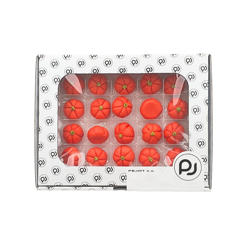 Figurki cukrowe na Halloween to gotowe do użycia dekoracje z masy cukrowej. Figurka przedstawia pomarańczową dynię. Dekoracja jest trójwymiarowa i w 100% jadalna. Idealna do ozdobienia halloweenowego tortu, deseru, wypieków, monoporcji, babeczek, muffinek, ciast i wszelkich strasznych słodkości. Każda figurka jest wykonana ręcznie, a przez to wyjątkowa i niepowtarzalna, dlatego może minimalnie różnić się od tego przedstawionego na zdjęciu. W opakowaniu 20 sztuk.