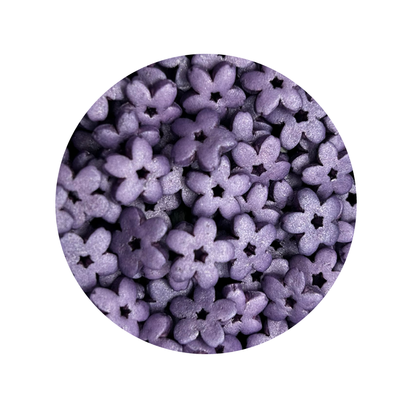 Posypka cukrowa to drobne konfetti w kształcie fioletowych kwiatków, stylizowanych margaretek. Posypka ma perłowy blask. Pozwala ciekawie udekorować: torty, muffinki, ciasta desery, cake pops, ciasteczka, pierniczki i wszelkie rodzaju wypieki. Jadalna posypka na tort pozwala stworzyć zachwycające dekoracje. Doskonała do ozdabiania wypieków i słodkości związanych z wiosną, urodzinami czy Wielkanocą.