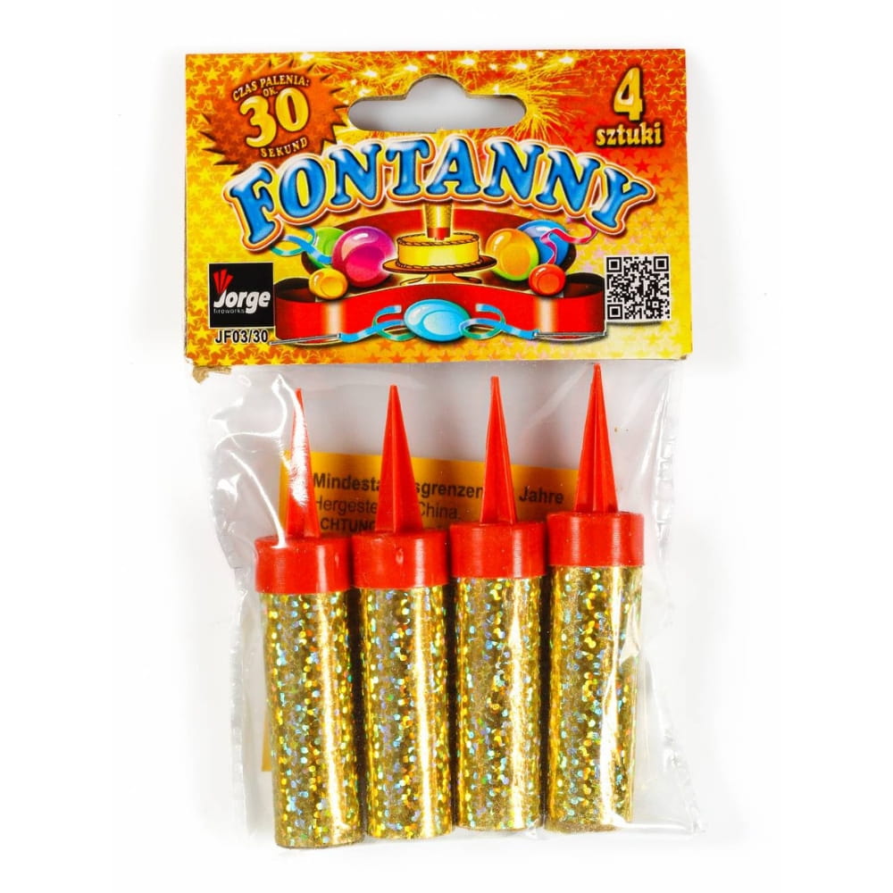 Sposób użycia: fontannę należy wbić w tort, jest zakończona specjalnym plastikowym szpikulcem. Uwaga fontanny nie należy odpalać w ręku, podpalamy ją po wbiciu w tort. Przed odpaleniem należy upewnić się, że fontanna jest stabilna. Po podpalaniu należy odsunąć się od iskier.