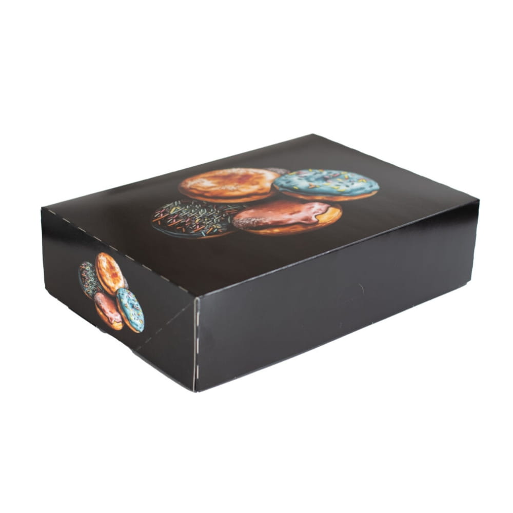 Karton na pączki z nadrukiem zamykany Czarny 31x22x8cm