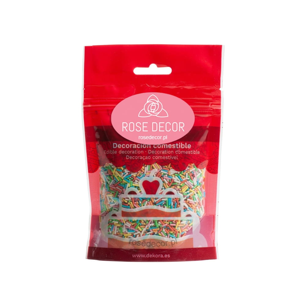 Pałeczki to malutkie twarde patyczki z masy cukrowej. Te kolorowe drobne patyczki w wesołym mixie żywych kolorów to prawdziwa królowa wśród posypek. To drobna posypka cukrowa o twardej, chrupiącej konsystencji. Posypka w tej postaci jest bardzo uniwersalna. Idealna do dekoracji babeczek, ciasteczek, pierniczków, muffinek, tortów, deserów, wypieków, cake pops, pralin, trufli, czekolady, lodów oraz wielu innych słodkich wyrobów, zwłaszcza tych z kremami i polewami. Czy jest ktoś, kto jej nie próbował? Zawsze warto postawić na klasykę: produkt po prostu obowiązkowy w każdej lodziarni, punkcie z goframi, przy tworzeniu donutów i domowych lizaków z ciasta.