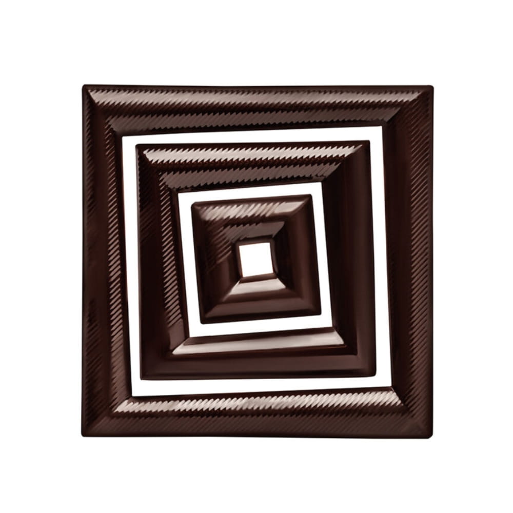 Kwadraty deserowe to zestaw dekoracji wykonanych z wysokiej jakości ciemnej czekolady deserowej. W opakowaniu 60 zestawów składających się z 3 obrysów kwadratu, ramek każdy. Trzy rozmiary kwadratów: 64, 44 i 23 mm. Łącznie 180 sztuk w 3 wielkościach. Minimalistyczny, uniwersalny kształt w połączeniu z trzema rozmiarami, pozwala stworzyć arcyciekawe efekty przestrzenne. Ta piękna, geometryczna dekoracja doda charakteru i artyzmu dekorowanym wyrobom. Kwadraciki idealnie sprawdzą się na nowoczesnych monoporcjach, tortach i pralinach. Używane także do dekorowania babeczek, mufiinek, pucharów lodowych, kremów, wypieków, słodkości i wszelkich deserów.