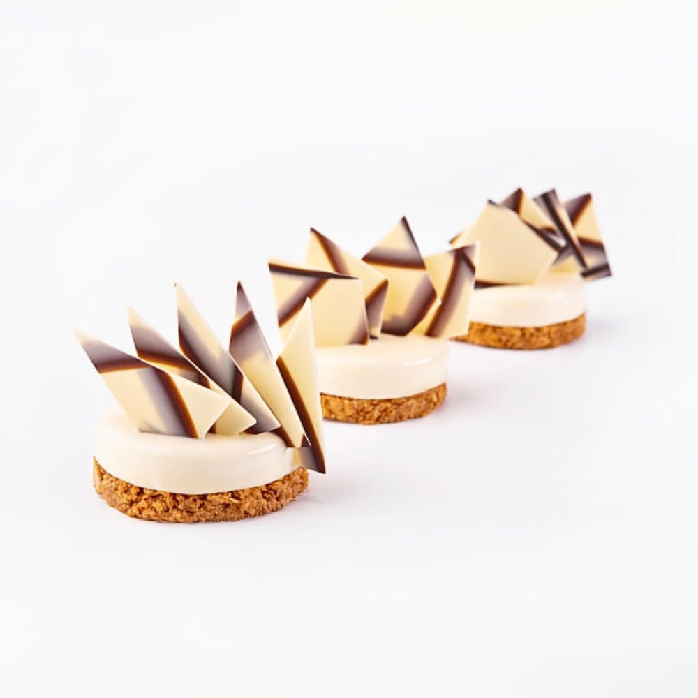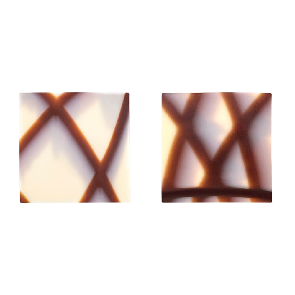 Unikalne połączenie białej i ciemnej czekolady stworzyło gamę dekoracji pełną nietuzinkowych wzorów i intrygujących deseni. Linia Marble Art to delikatne, harmonijne desenie na tafli czekolady, którą można dowolnie łamać na mniejsze elementy. Prostota, uniwersalna przykuwająca wzrok kolorystyka i geometryczny design to wyznaczniki tych niezwykłych dekoracji. Nadaj pysznego wdzięku swoim deserom!
