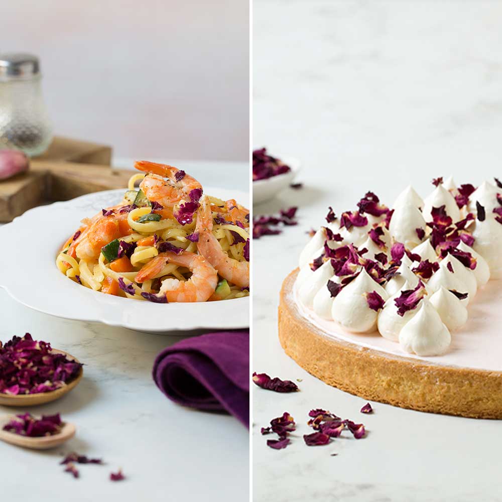 Róża to najbardziej romantyczny i aromatyczny z kwiatów jadalnych. Wystarczy szczypta tych delikatnych różowych płatków, aby wprowadzić romantyczny nastrój i nadać kolorów daniom i deserom. Kwiaty jadalne to piękna i naturalna dekoracja, a do tego bardzo zdrowa! Kwiaty róży zawierają witaminę C wspierającą odporność, sole mineralne oraz są źródłem flawonoidów, które w organizmie człowieka działają jak antyoksydanty. Łączą w sobie właściwości kulinarne i prozdrowotne. Kwiaty jadalne to piękna dekoracja i w 100% naturalna posypka w jednym.