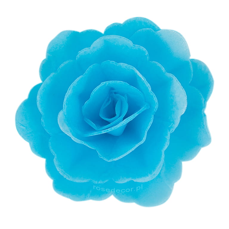 Kwiaty waflowe na tort Róża Chińska Niebieska średnia 18szt