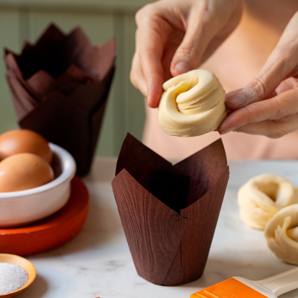 Papilotki Tulipany w kolorze brązowym na słodycze i wypieki od renomowanej firmy Decora. Wykonane z wysokiej jakości papieru do pieczenia, odpornego na wysoką temperaturę i tłuszcz. Można je piec w piekarniku, są odporne na temperaturę do 220°C. Idealne do pieczenia babeczek, muffinek, sporych maffinów czy innych wypieków. Są bardzo wygodne i estetyczne: pozwalają zarówno przygotować, upiec, jak i zaserwować słodkości. Nadają wypiekom profesjonalnego wyglądu i nie przywierają do ciasta. Pięknie prezentują słodkie przekąski, desery, czy słodycze na prezent. Idealne na wesela, bankiety, pięknie ozdobią słodki stół i podkreślą elegancję wypieków przeznaczonych do obdarowywania. Doskonałe do użytku domowego, jak i profesjonalnego.