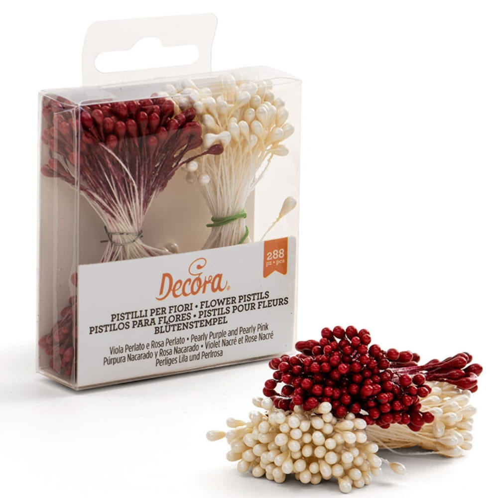 Pręciki do kwiatów cukrowych białe i czerwone Decora 288szt