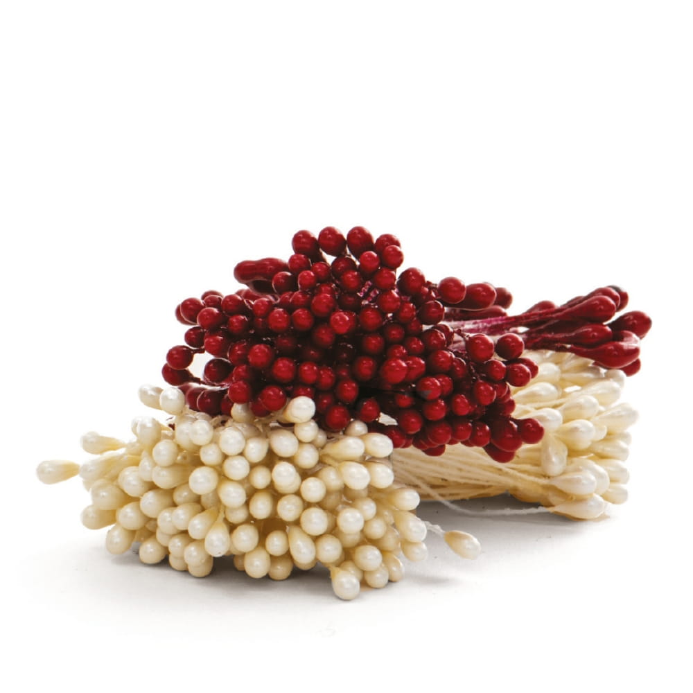 Pręciki do kwiatów cukrowych, sztuczne, pięknie pomalowane gotowe słupki do wykańczania kwiatów. Czasami naprawdę ciężko zrobić naturalnie wyglądające wnętrza do kwiatów z masy cukrowej. Idealnym rozwiązaniem są gotowe pręciki! Zakończone długimi drucikami ułatwiającymi złożenie skomplikowanych kwiatów w całość. Polecamy je szczególnie w połączeniu z naszymi zestawami do tworzenia cukrowych kwiatów. W opakowaniu 288 sztuk w dwóch wzorach: czerwonym oraz białym.
