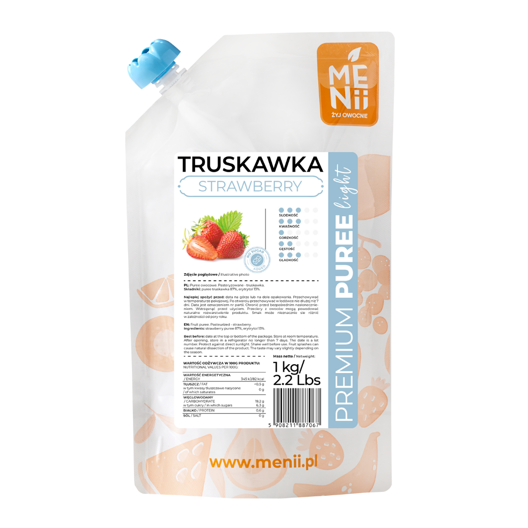 Pulpa owocowa PremiumPuree Menii Truskawka Light 1kg