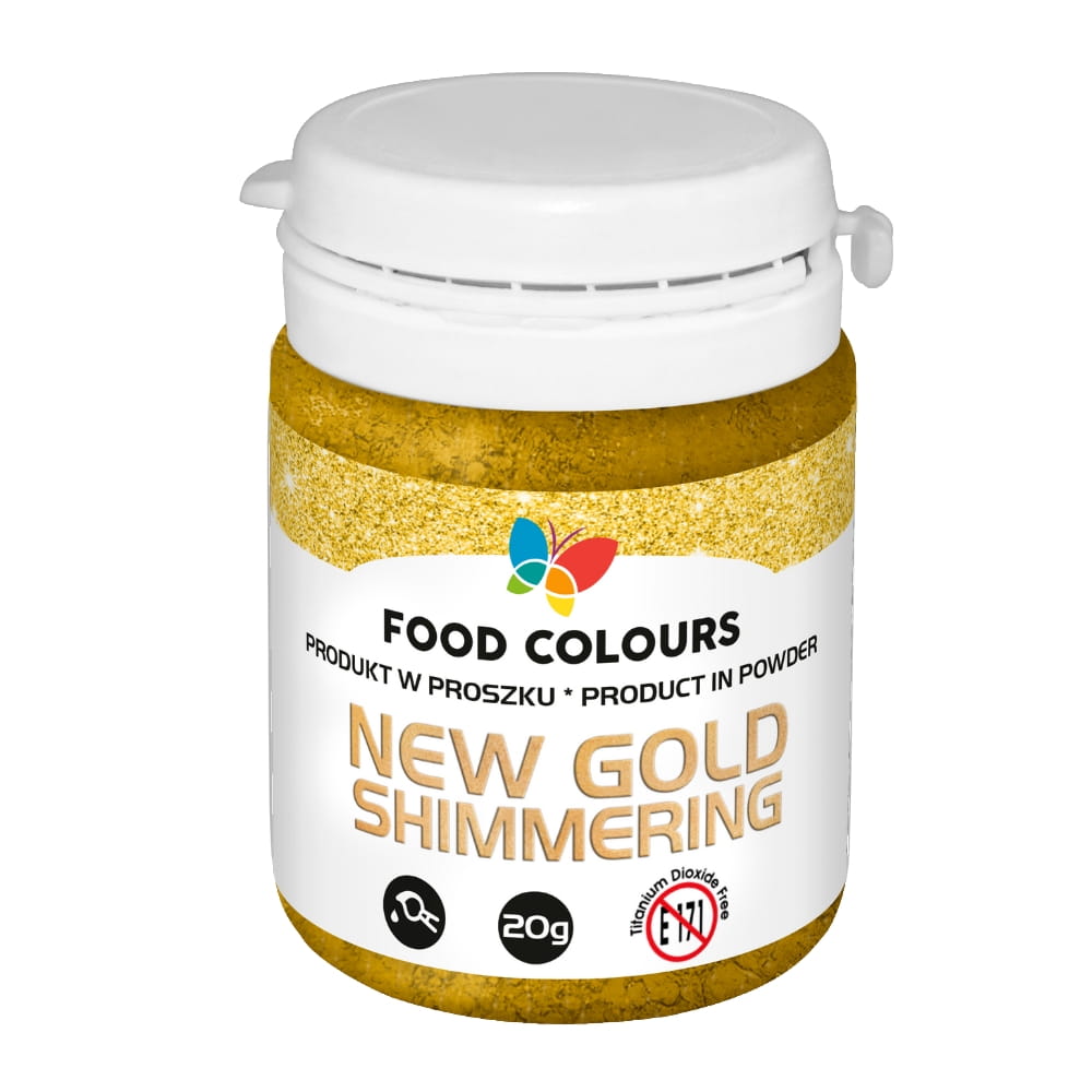 Błyszczący złoty pyłek to wysokiej jakości barwnik w postaci miałkiego proszku o różnej grubości cząsteczek. Jadalny, błyszczący pyłek mieni się różnymi metalicznymi odcieniami, nadając dekorowanym powierzchniom niepowtarzalny blask. Mocno skoncentrowany, profesjonalny barwnik jest w 100% jadalny i ma wiele zastosowań: można go nanosić pędzelkiem, obsypywać albo zmieszać z alkoholem i uzyskać farbkę.