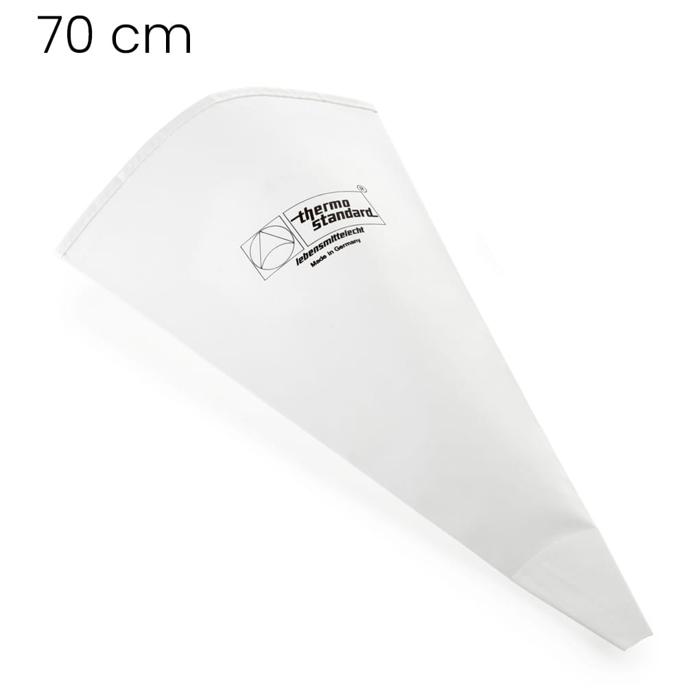 Wszystkie worki do szprycowania wielokrotnego użytku, marki Thermohauser są oznaczone numerem, pod którym kryje się jeden rozmiar. Przy zakupie nowego worka, albo zmianie na produkt wykonany z innego materiału nie ma potrzeby sprawdzania rozmiarów. Rękaw cukierniczy wielokrotnego użytku nr 9 będzie miał te same wymiary, bez względu na to, z jakiej pochodzi linii i z jakiego został wykonany materiału. Rozmiar 9 oznacza worek o długości 70 cm.