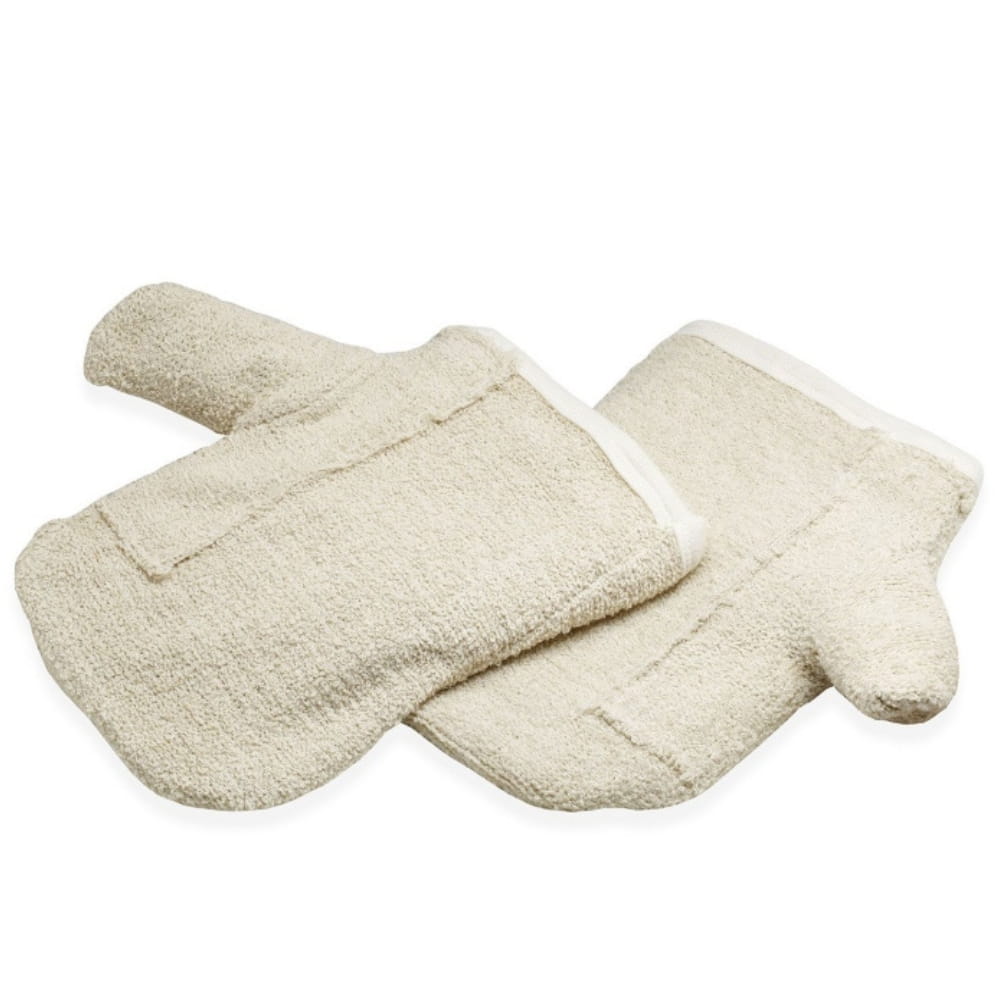 Rękawice do pieczenia wykonane z naturalnej, niebarwionej bawełny. Rękawice żaroodporne wytrzymałe na temperaturę do +220°C. Posiadają certyfikat CE na osobistą ochronę przed temperaturą! Najwyższej jakości, profesjonalny produkt firmy Thermohauser. Rękawice są jednopalczaste z kciukiem, bez mankietu. Wewnątrz dodatkowo wzmocnione. Wymiary: 26 × 14,5 cm.