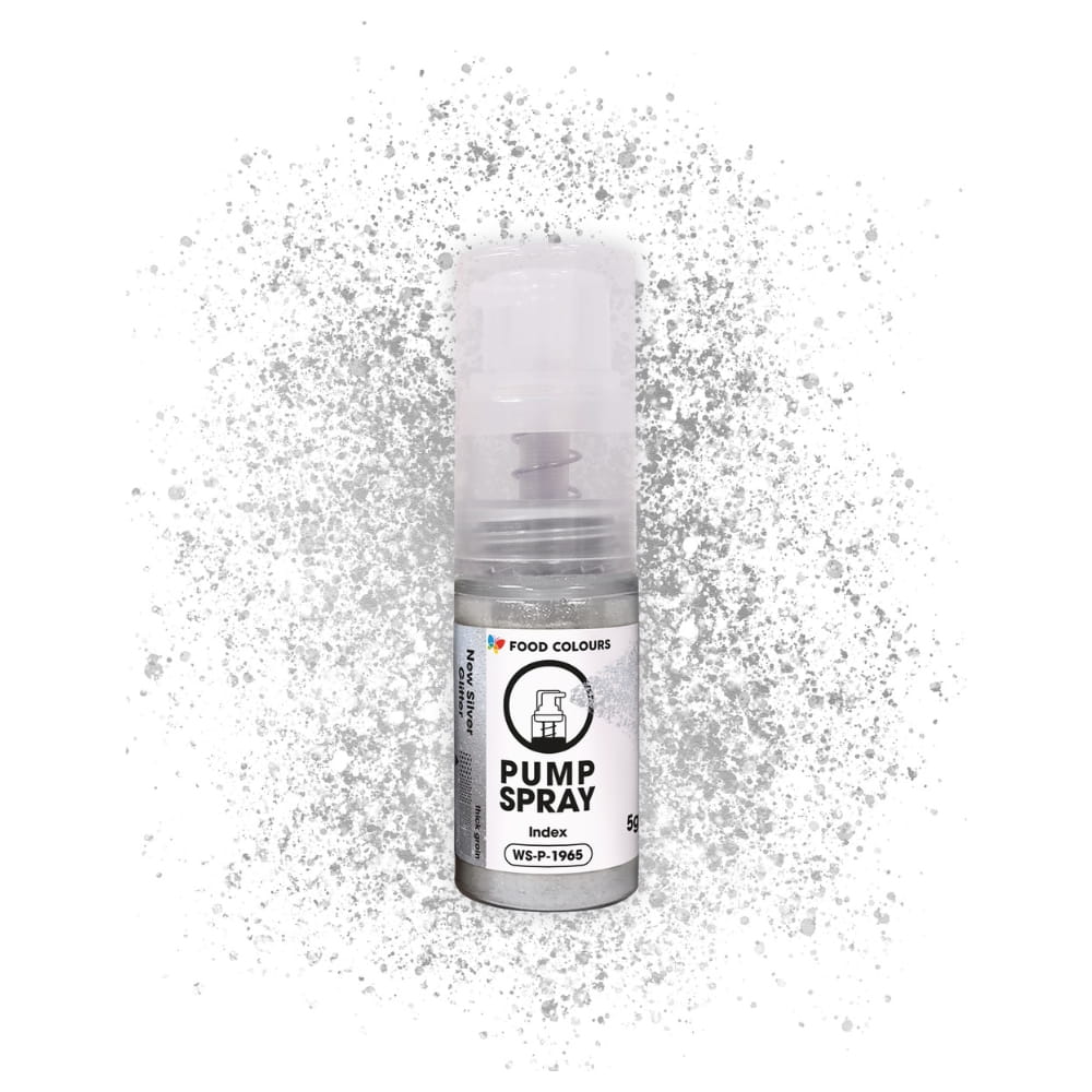 Srebrny pyłek w postaci suchego sprayu, który tworzy efekt metalicznego połysku na dekorowanych powierzchniach. Glitter to duże błyszczące kawałki brokatu, które nadają cudownego blasku. Idealny produkt do spektakularnego wykończenia cukierniczych dzieł. Można nim dekorować powierzchnie i masy, kremy, torty, marcepan, formy do pralin, dekoracje cukrowe, żele, czekoladki, dekoracje cukrowe i praktycznie wszystkie produkty cukiernicze. Dzięki pompce jest bardzo łatwy i wygodny w stosowaniu, także w domowych warunkach.