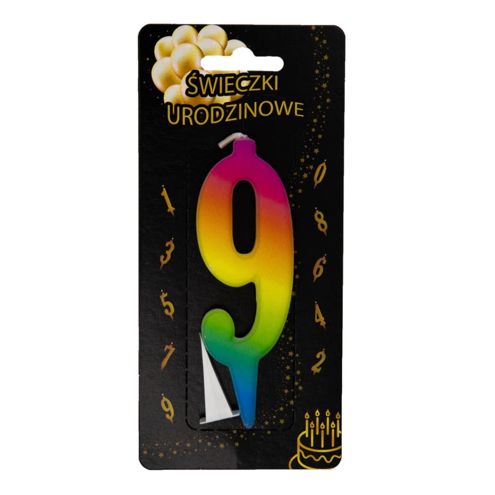 Świeczka na tort Cyfra 9 tęczowa UV Kolorowa 10,5cm