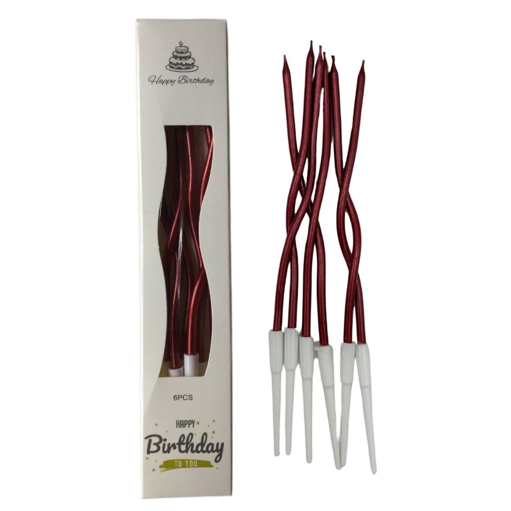 Świeczki urodzinowe we wspaniałym metalicznym czerwonym kolorze: mienią się niezwykłym blaskiem. Brokatowa metaliczna czerwień idealna na Walentynki. W opakowaniu 6 zjawiskowych świeczek z ekskluzywnej linii pofalowanych, spiralnych świeczek urodzinowych. Świeczki lśnią metalicznym blaskiem i będą stanowić idealną dekorację tortów lub torcików urodzinowych, bento cakes, deserów, zestawów lodowych lub innych słodkości. W eleganckim papierowym opakowaniu 6 sztuk wraz z podstawkami.