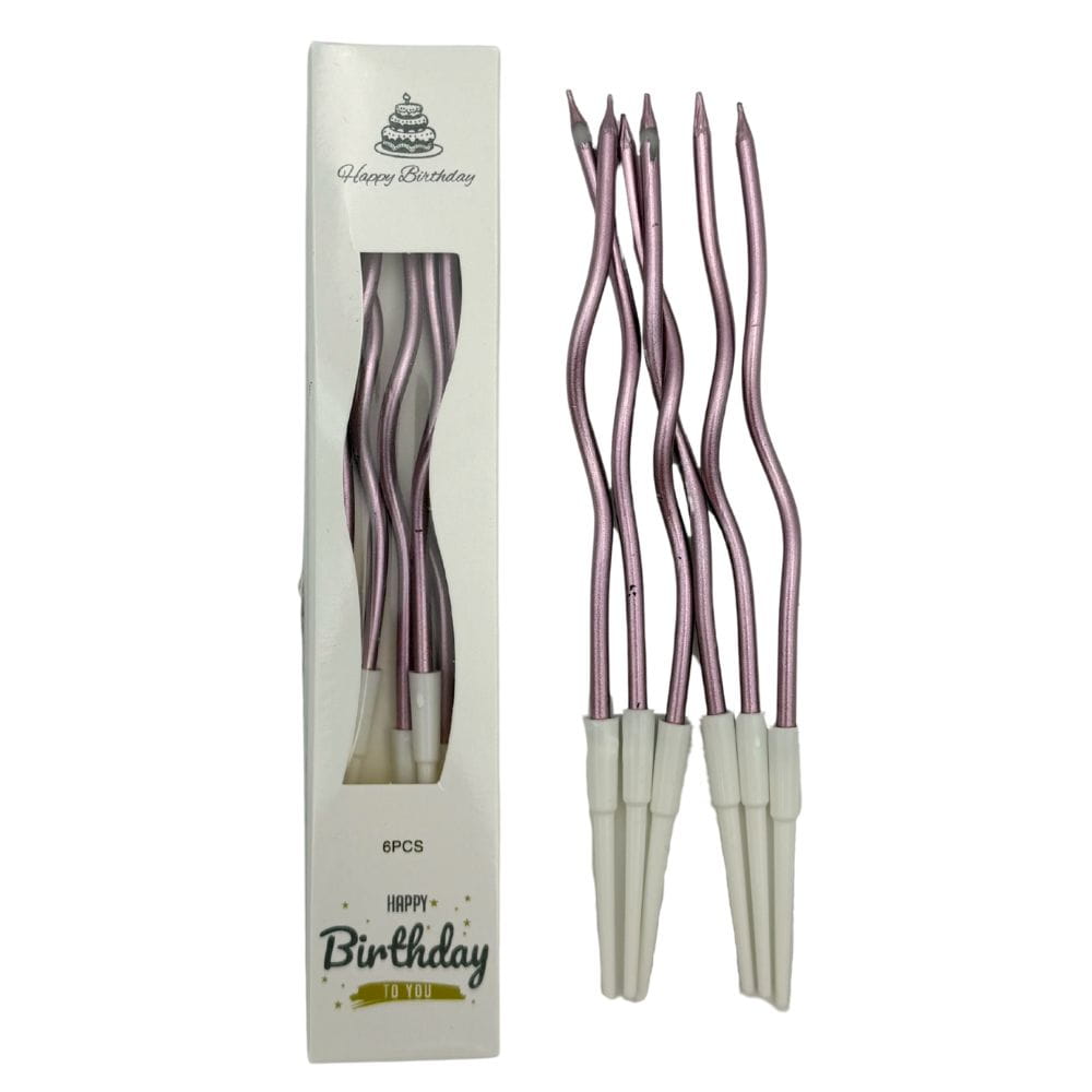 Świeczki urodzinowe na tort Faliste Różowe metalik 15cm 6szt