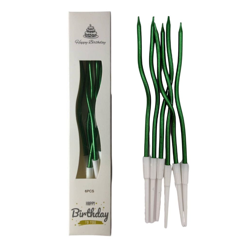 Świeczki urodzinowe na tort Faliste Zielone metalik 15cm 6szt