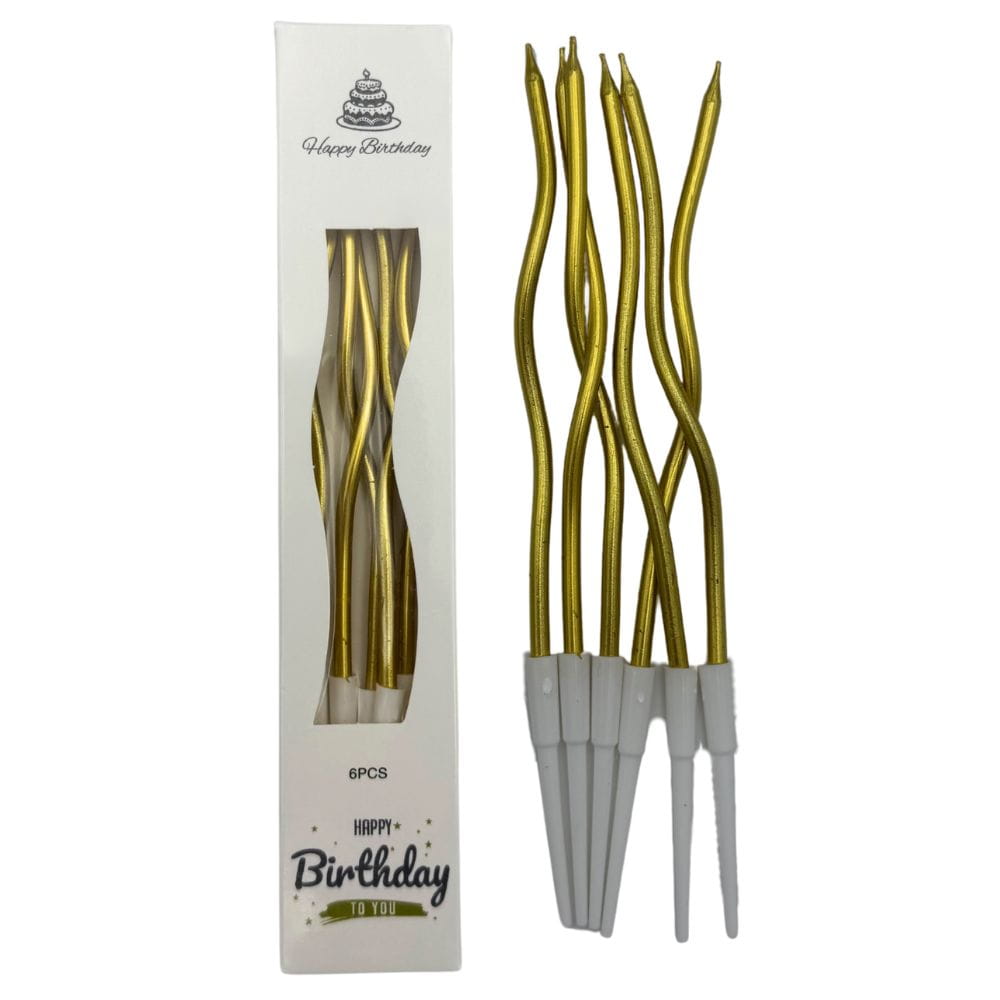 Świeczki urodzinowe na tort Faliste Złote metalik 15cm 6szt