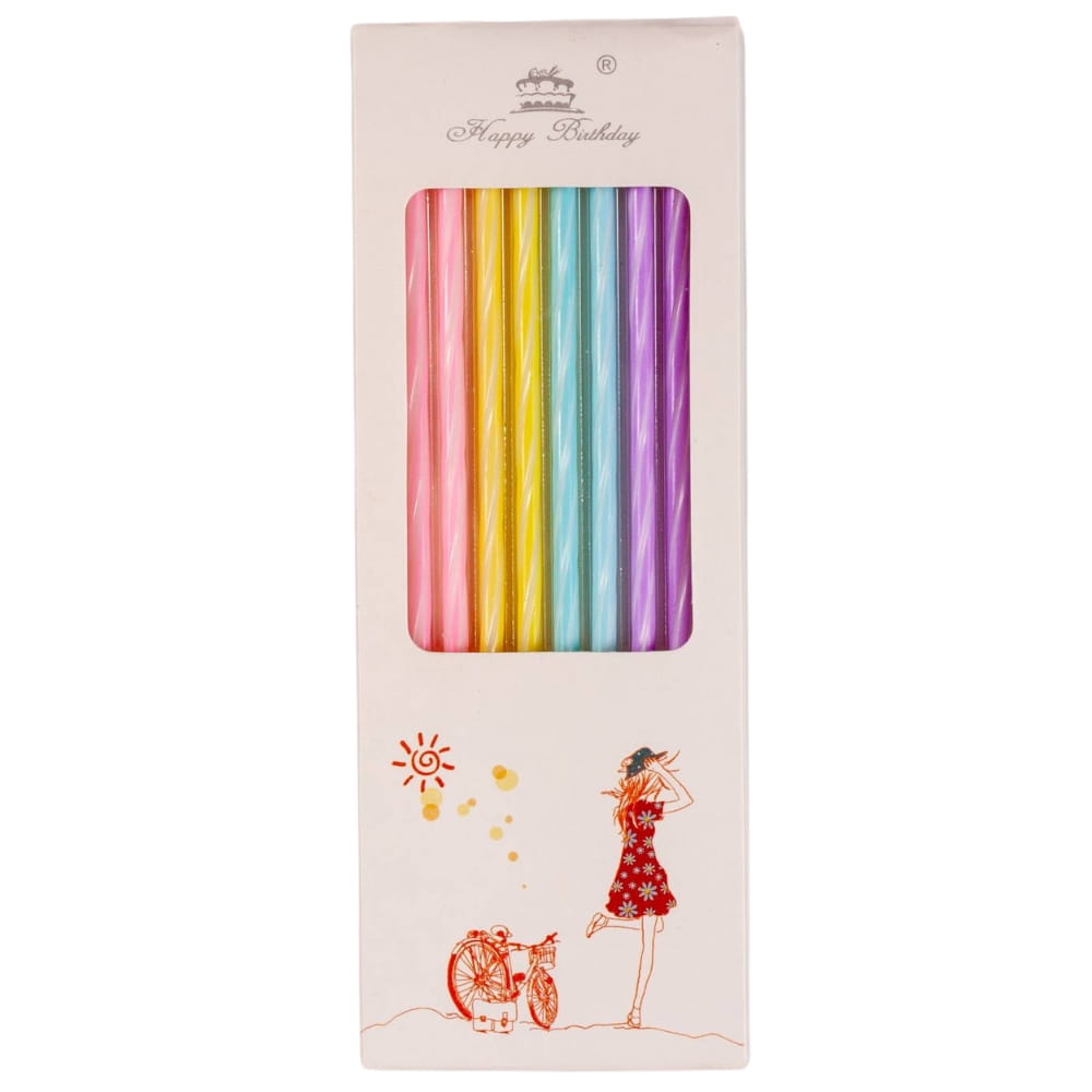 Świeczki urodzinowe na tort Pastelowe spiralny wzór 15,5cm 8szt