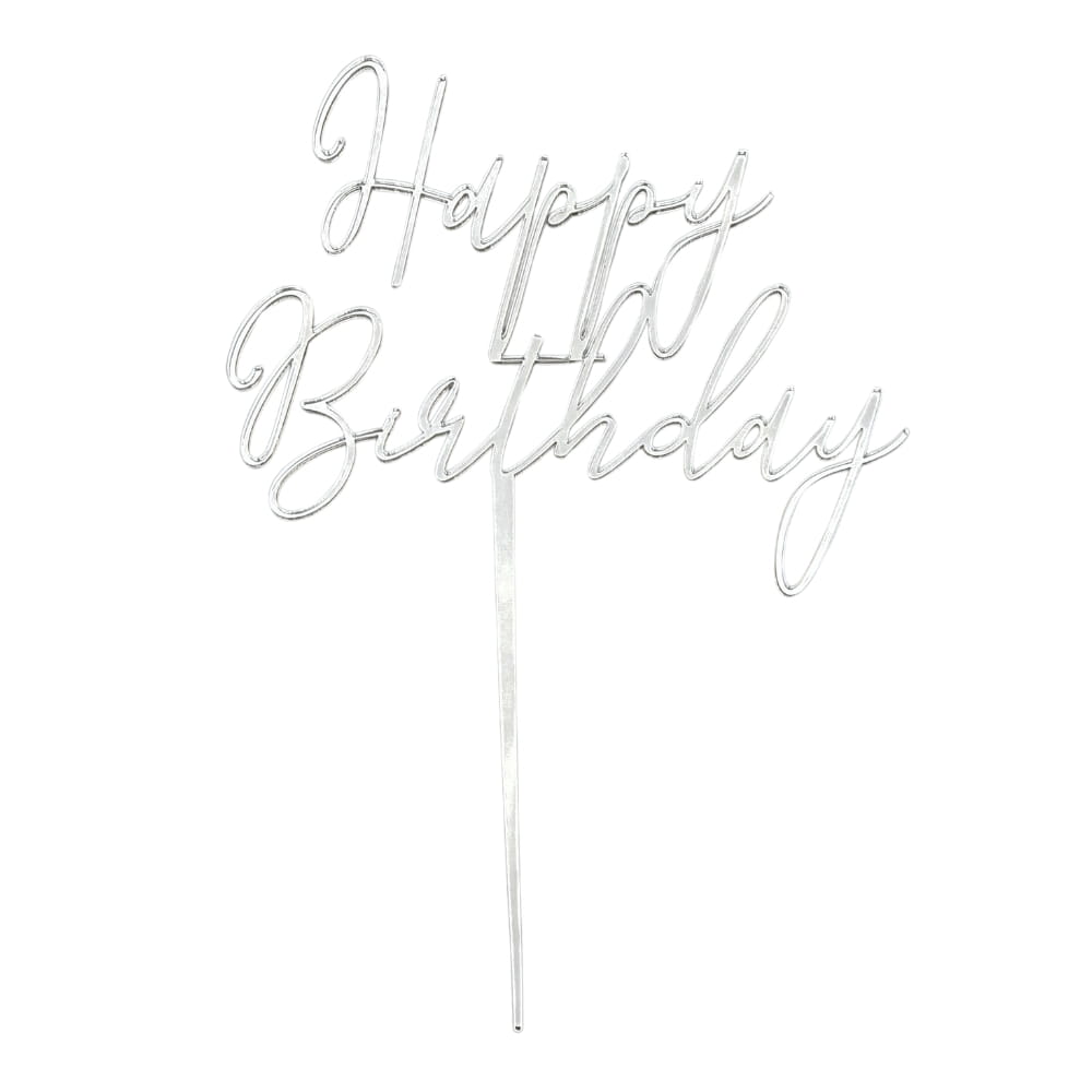 Topper Happy Birthday Srebrny napis nowoczesny 15cm