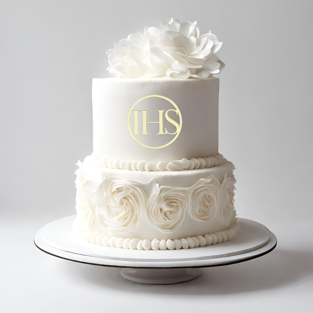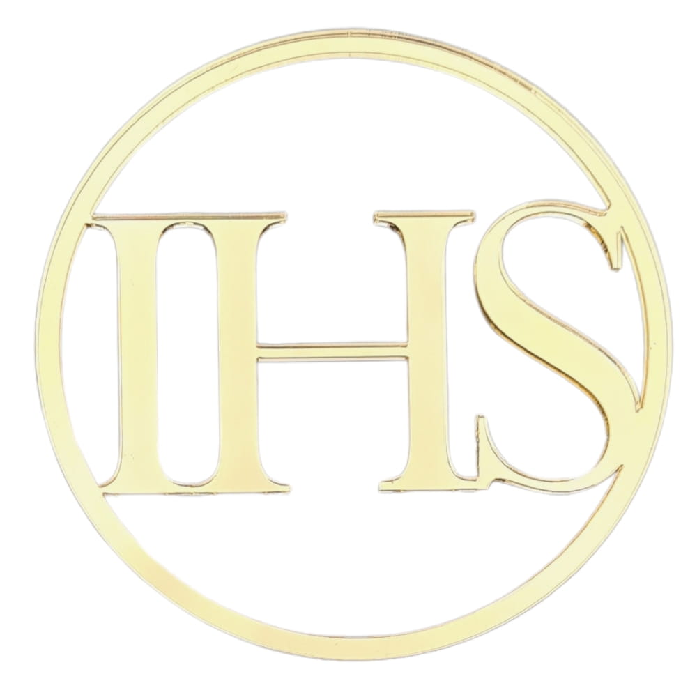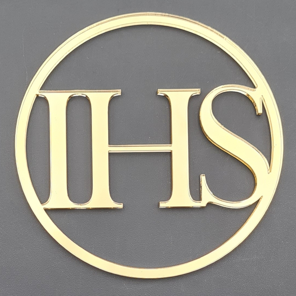 Topper na tort komunijny wykonany z bezpiecznego i dopuszczonego do kontaktu z żywnością pleksi. Materiał jest bardzo mocny i wytrzymały. Prosty klasyczny napis IHS w okrągłej obręczy. Piękna ozdoba na tort w złotym kolorze z efektownym, lustrzanym odblaskiem. To idealna dekoracja komunijna: w łatwy i efektywny sposób pozwala udekorować bok tortu. I pięknie prezentuje się na zdjęciach! Dekor może też stanowić miłą i trwałą pamiątkę tej wyjątkowej uroczystości.