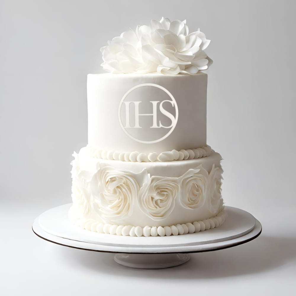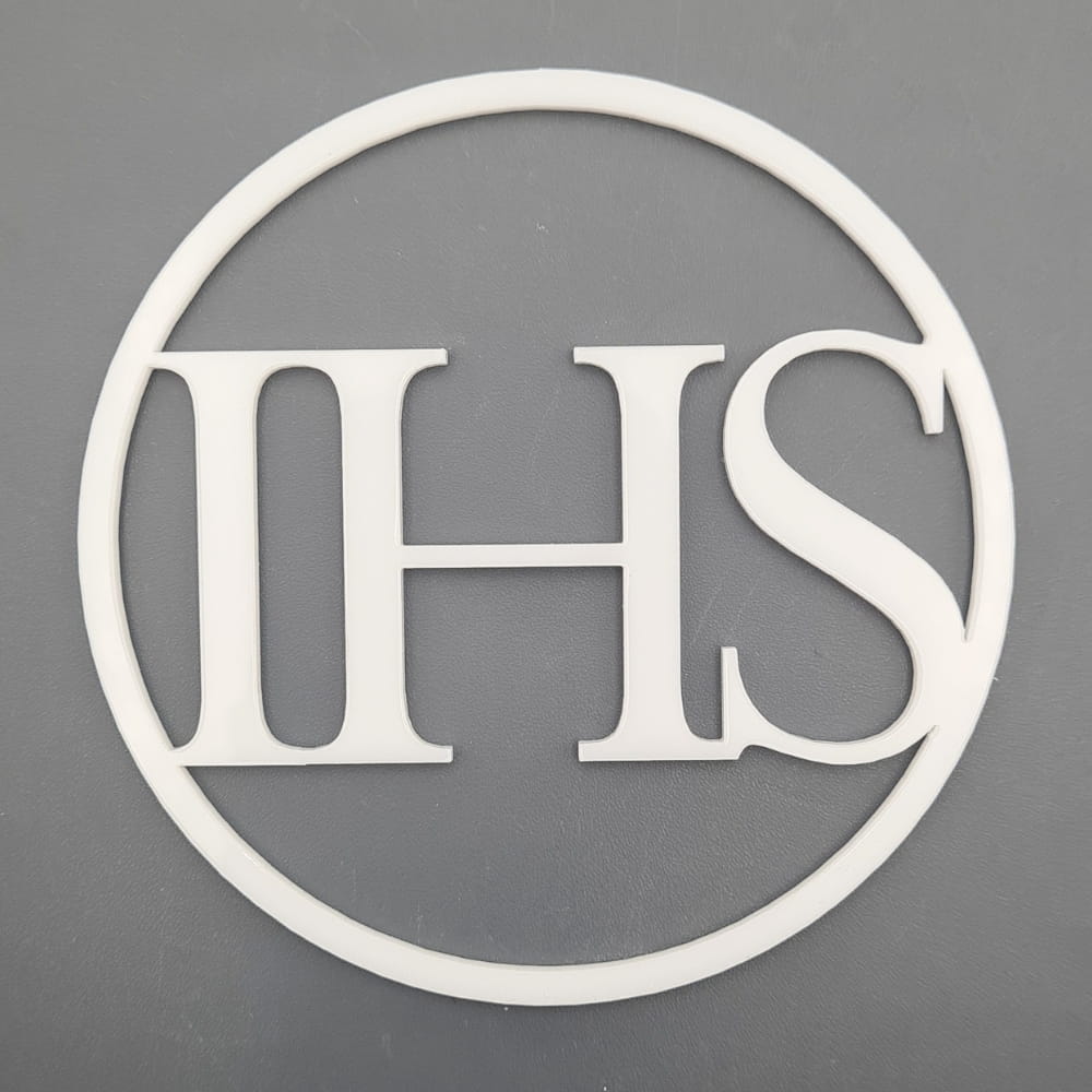 Topper na tort komunijny wykonany z bezpiecznego i dopuszczonego do kontaktu z żywnością pleksi. Materiał jest bardzo mocny i wytrzymały. Prosty klasyczny napis IHS w okrągłej obręczy. Piękna ozdoba na tort w białym kolorze z pięknym matowym wykończeniem. To idealna dekoracja komunijna: w łatwy i efektywny sposób pozwala udekorować bok tortu. I pięknie prezentuje się na zdjęciach! Dekor może też stanowić miłą i trwałą pamiątkę tej wyjątkowej uroczystości.