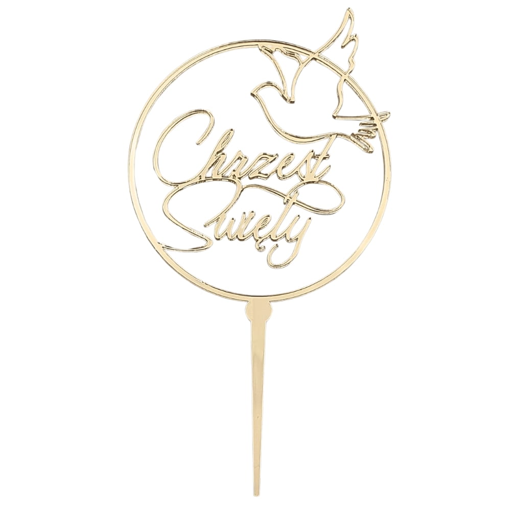 Topper na tort Chrzest Święty Gołąbek i obręcz Złoty 13x14,5cm