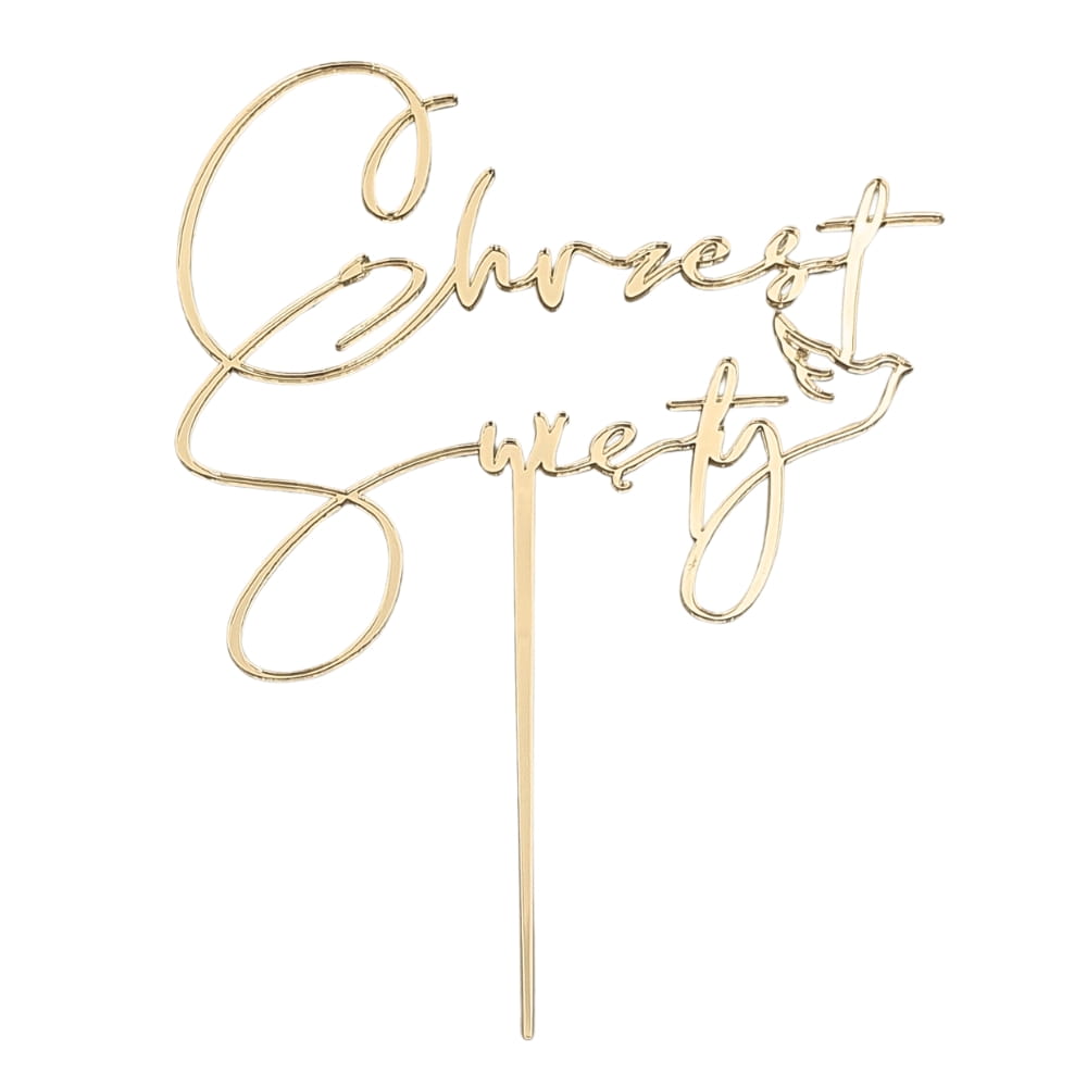 Złoty lustrzany topper napis Chrzest Święty z gołąbkiem