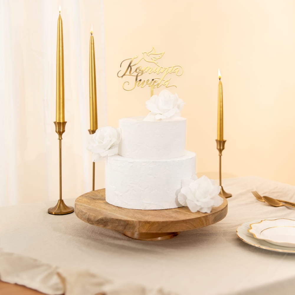 Topper na tort Komunia Święta Złoty lustrzany napis z gołąbkiem