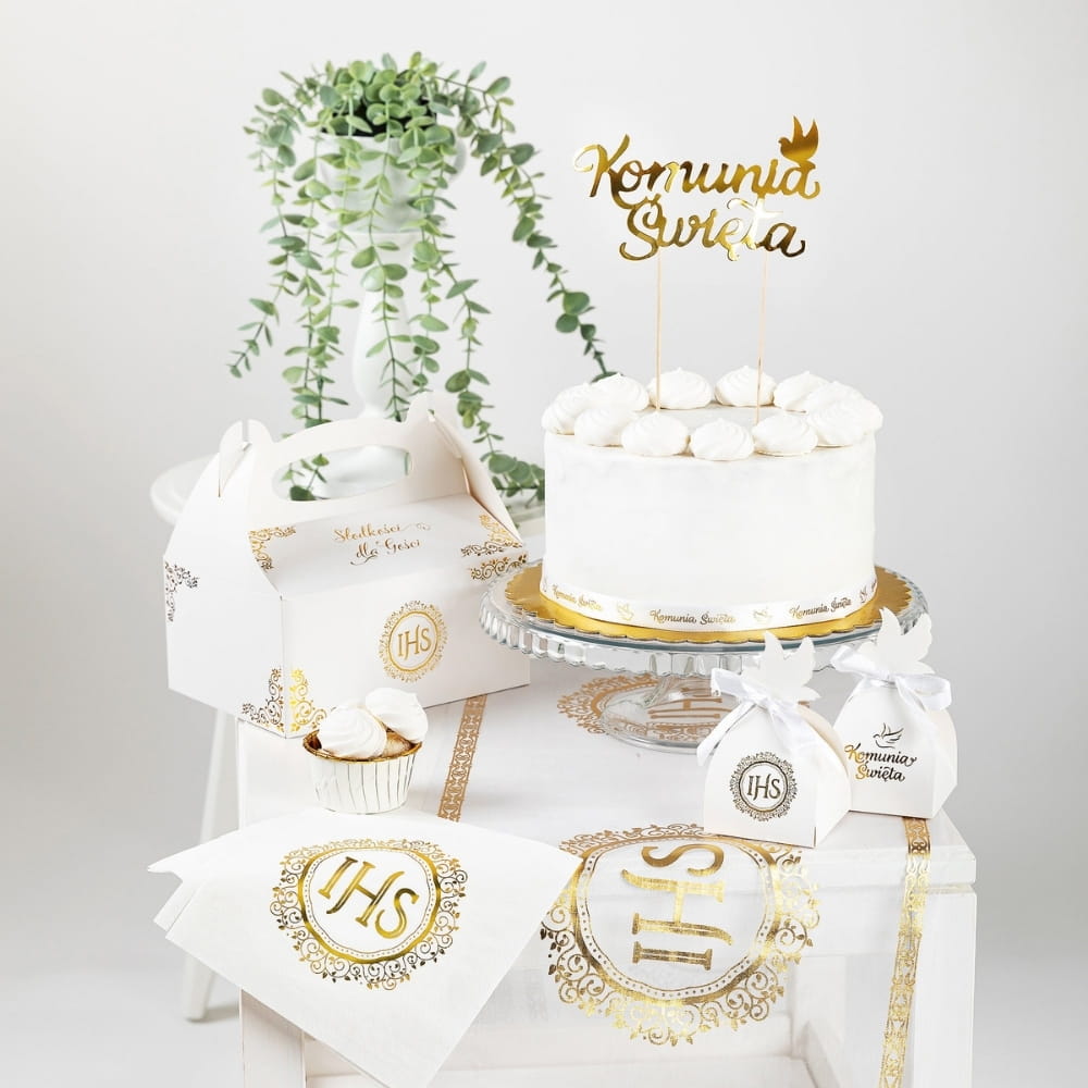 Złoty topper do ciasta Komunia Święta: