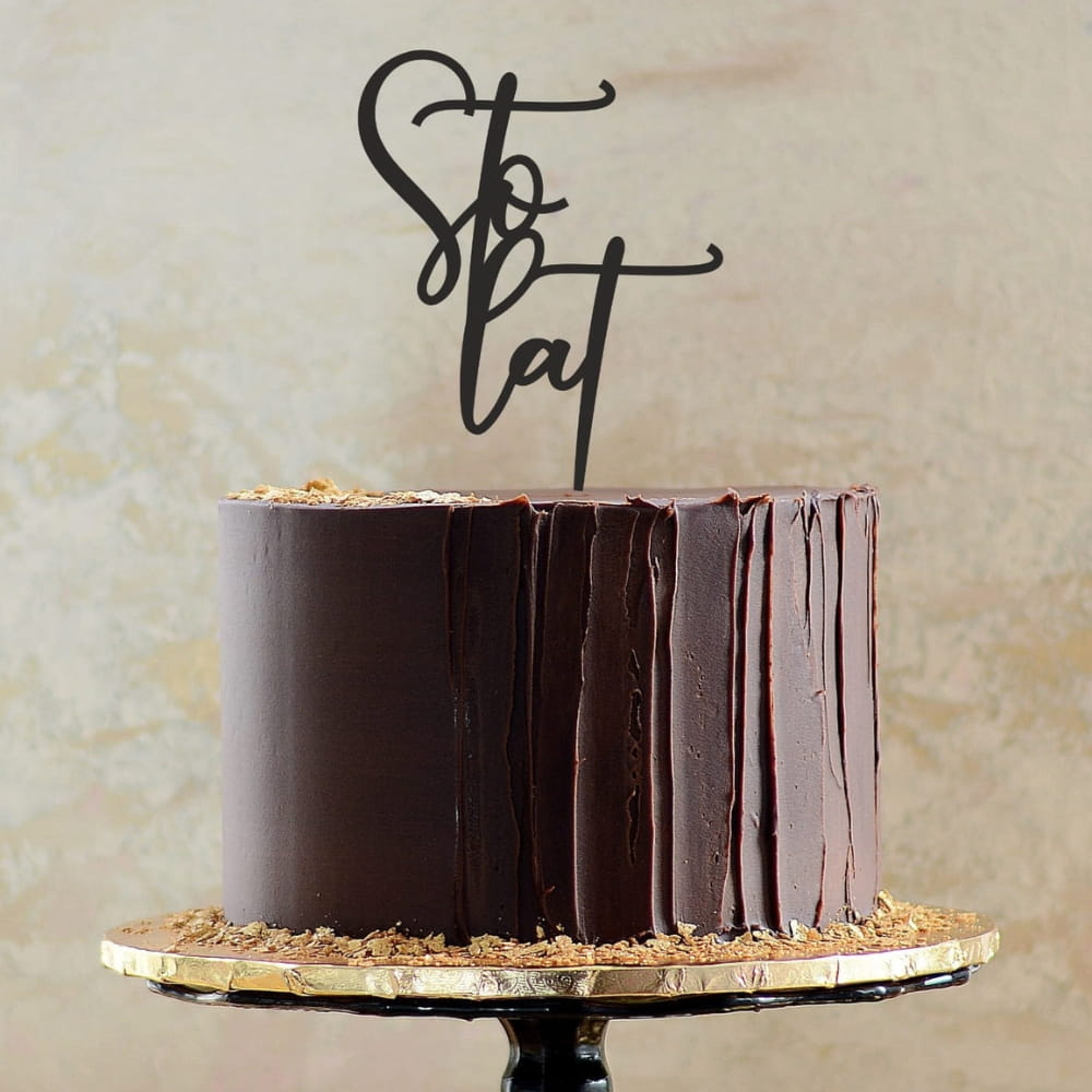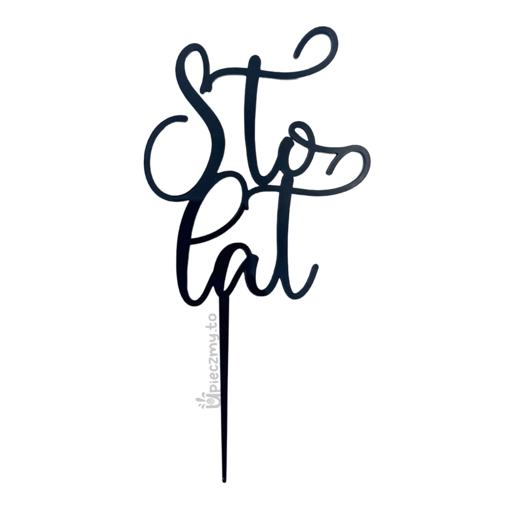 Topper na tort wykonany z bezpiecznego i dopuszczonego do kontaktu z żywnością pleksi. Topper ma głęboki czarny kolor. Materiał jest bardzo mocny i wytrzymały. Wykonany piękną kursywą napis "Sto lat" to prosty i nigdy nienudzący się, motyw urodzinowych życzeń. Ozdobne zawijasy liter mocno przykuwają uwagę. To piękna czarna dekoracja niejadalna o matowym wykończeniu. Pozwala bardzo łatwo i szybko udekorować każdy rodzaj tortu. Co więcej, wykonany z plexi topper będzie wyglądał pięknie przez cały czas trwania nawet najdłuższej uroczystości. Idealny, klasyczny pomysł na urodziny i imieniny!