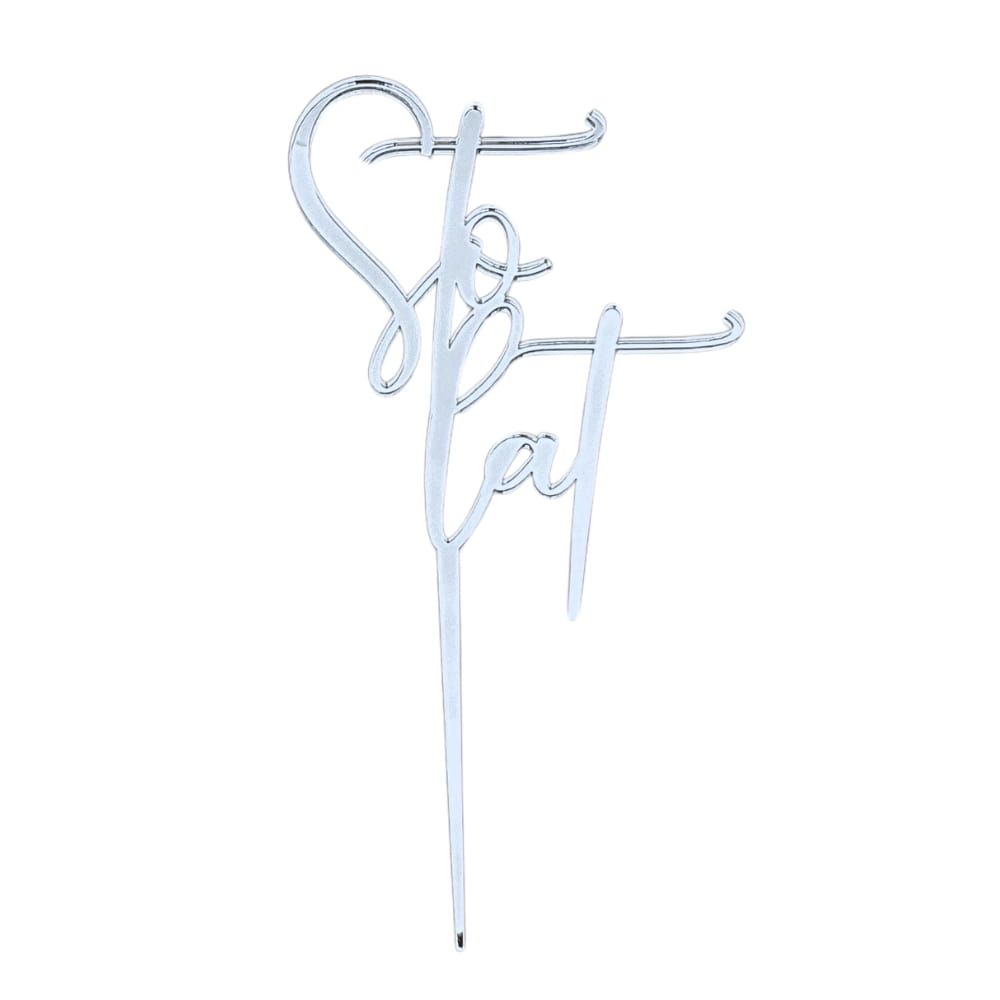 Srebrny lustrzany topper pionowy napis "Sto lat"
