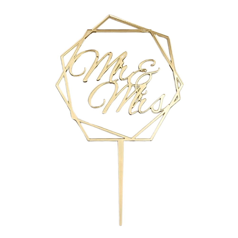 Złoty topper napis Mr&Mrs w geometrycznej ramce