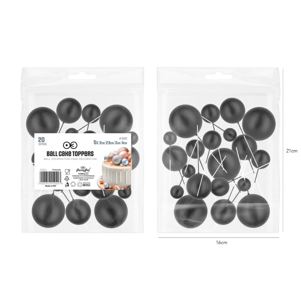 Toppery na tort Czarne Kulki matowe zestaw 20szt