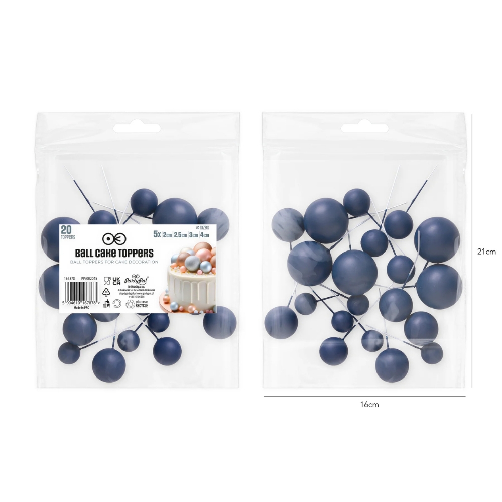 Toppery na tort Granatowe Kulki matowe zestaw 20szt