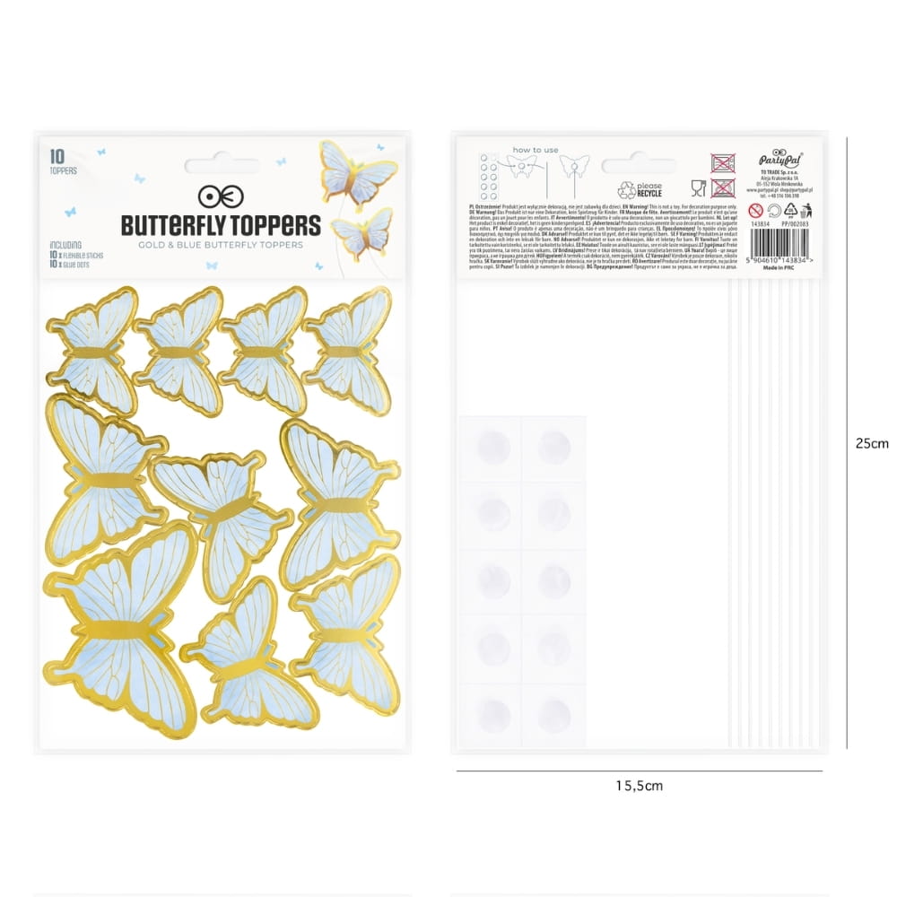 Toppery na tort Motyle niebiesko-złote zestaw 10szt